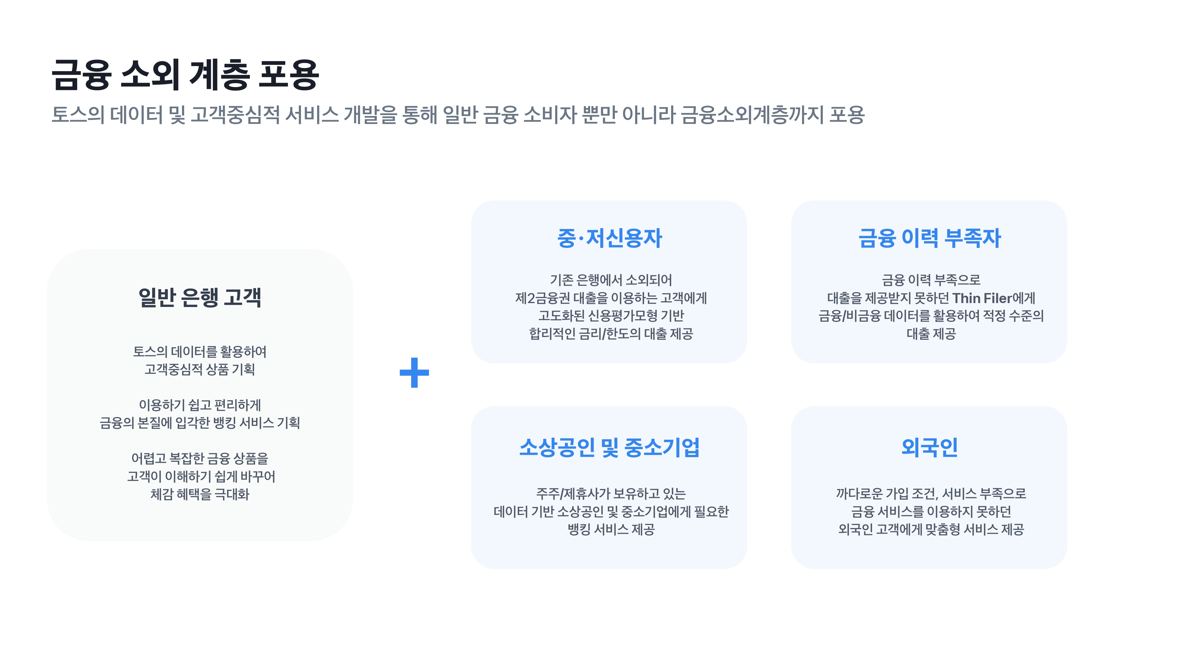금융위원회는 금일 인가 이후 토스뱅크가 차질 없이 성장할 수 있도록 ‘증자계획*의 성실한 이행’을 부대조건으로 부과하였습니다.