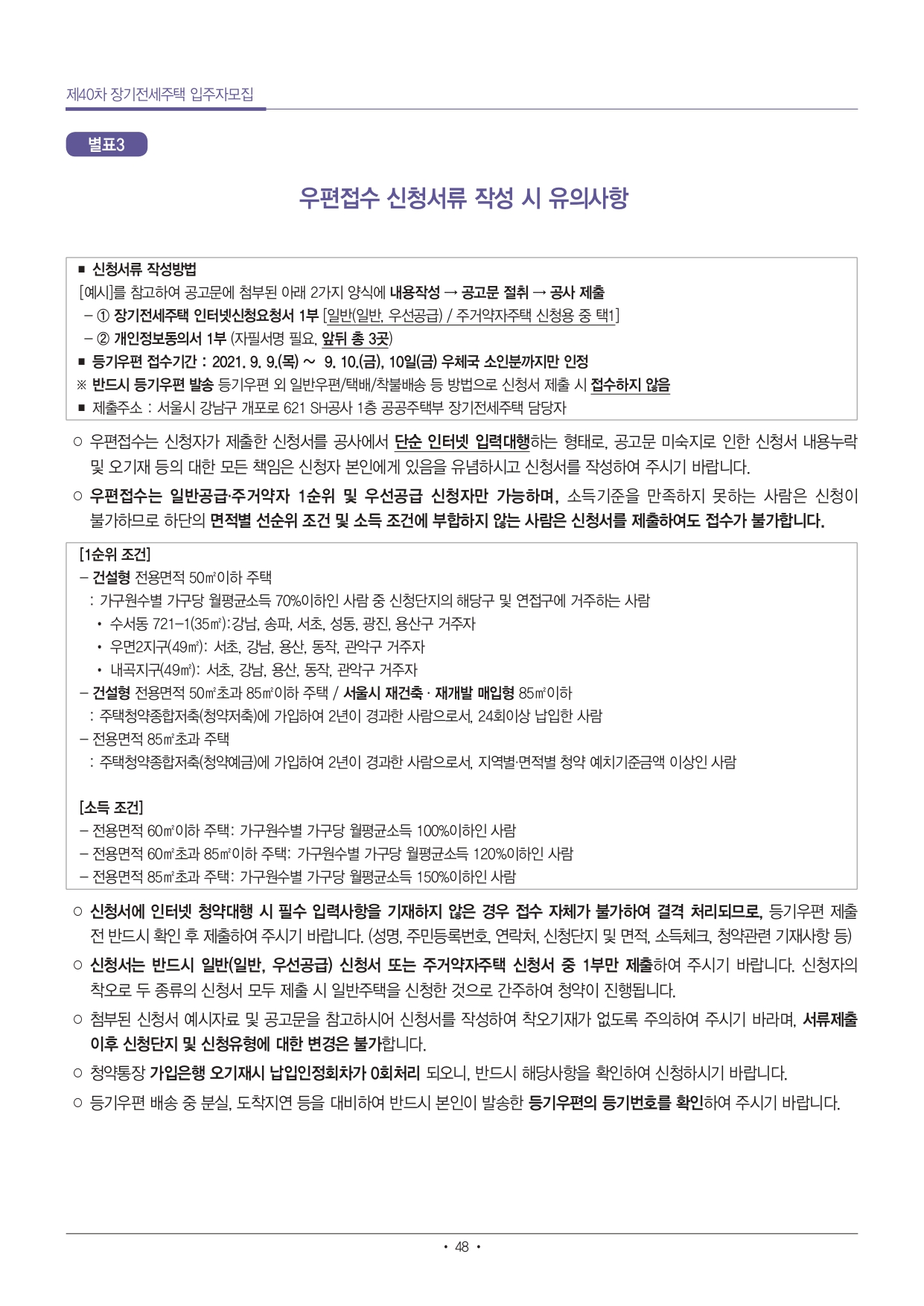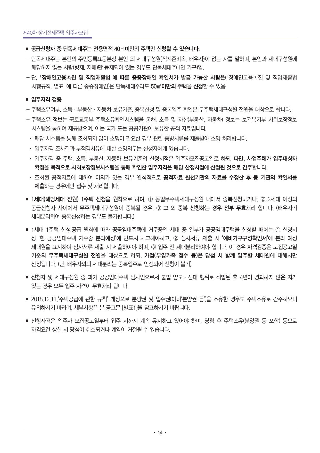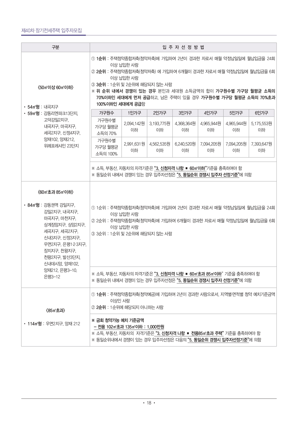 ■ 단독세대주(1인가구)는 전용 40㎡ 이하 주택만 신청 가능합니다.