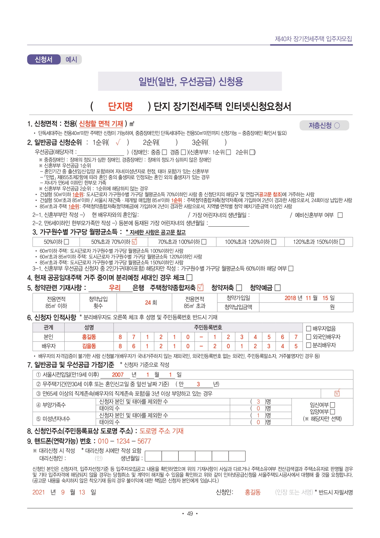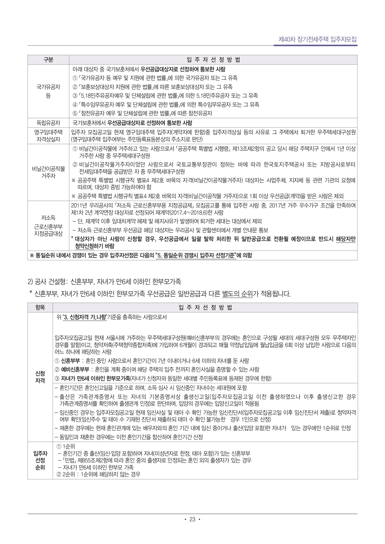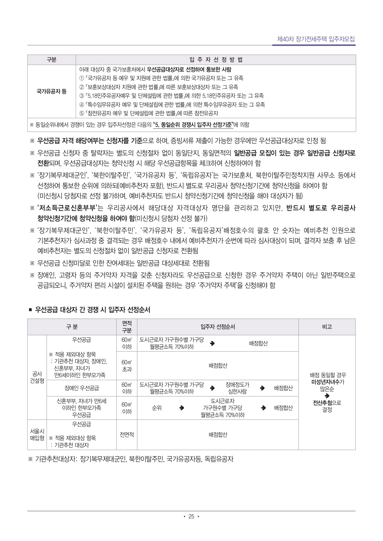 ■ 단독세대주(1인가구)는 전용 40㎡ 이하 주택만 신청 가능합니다.