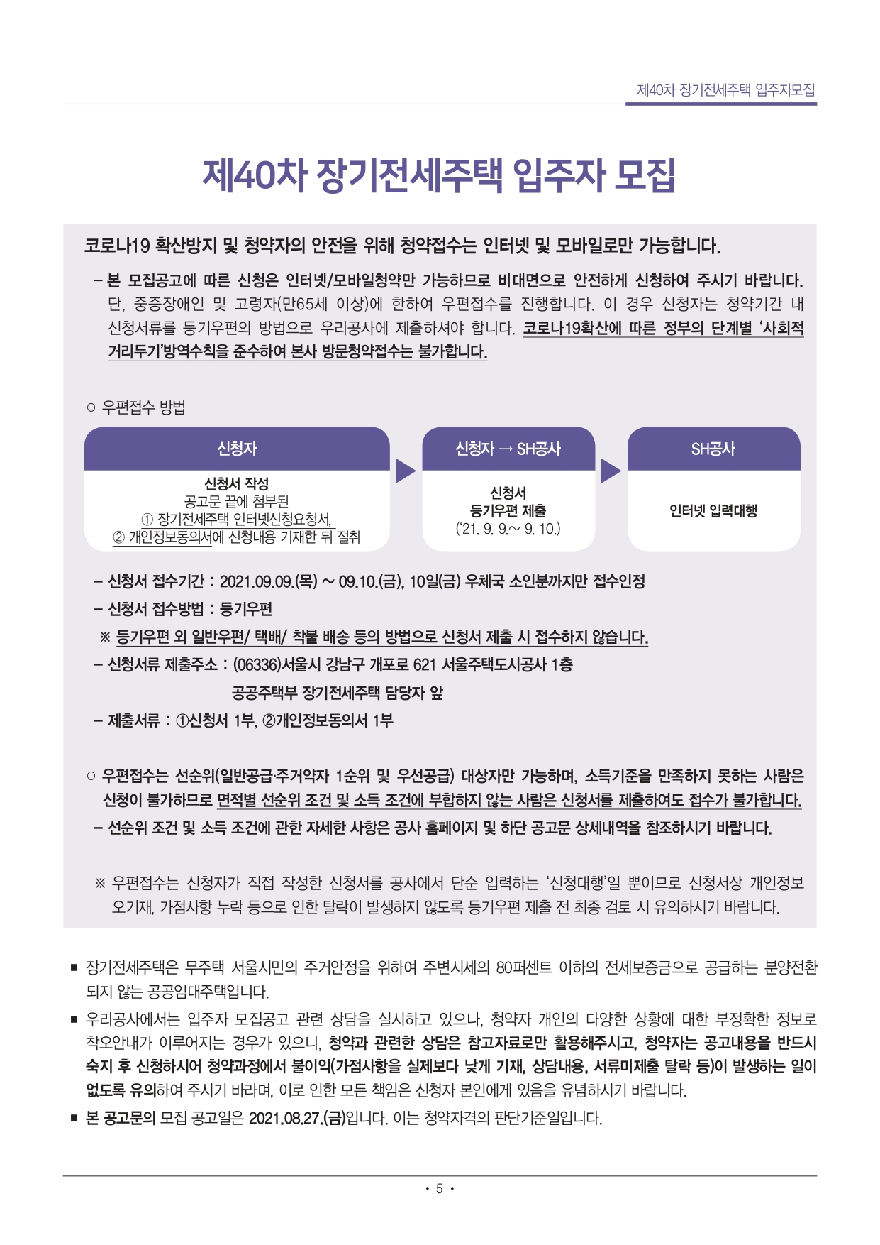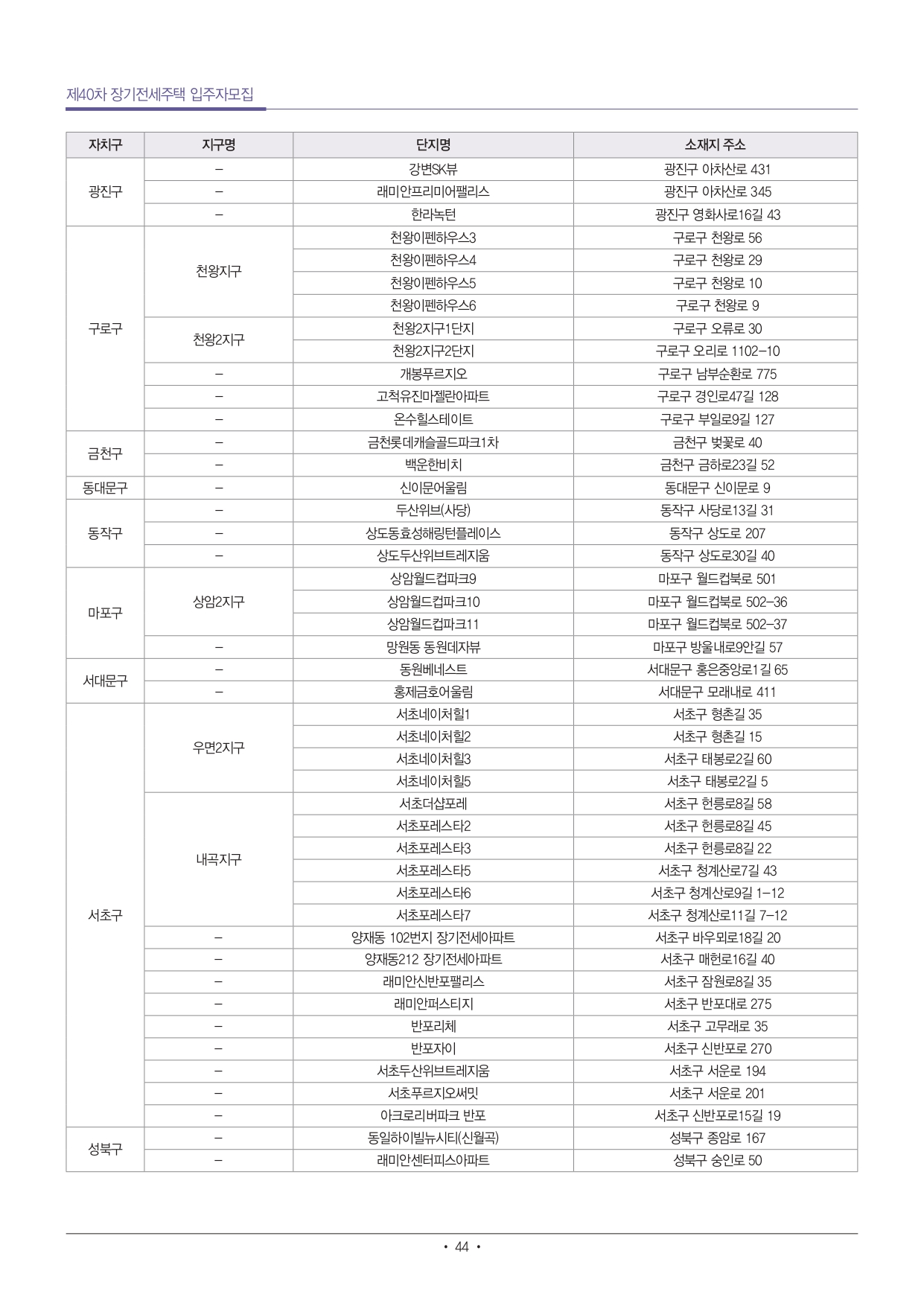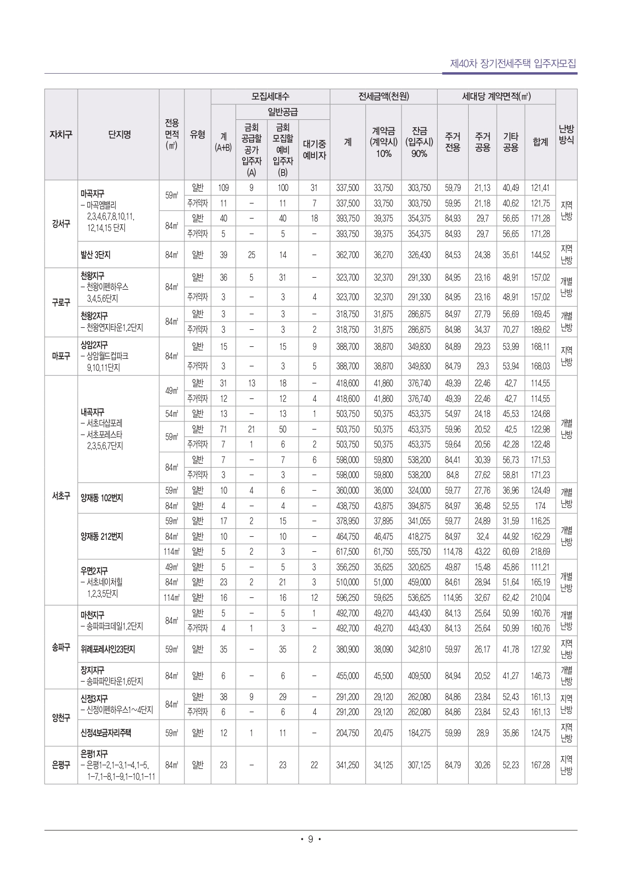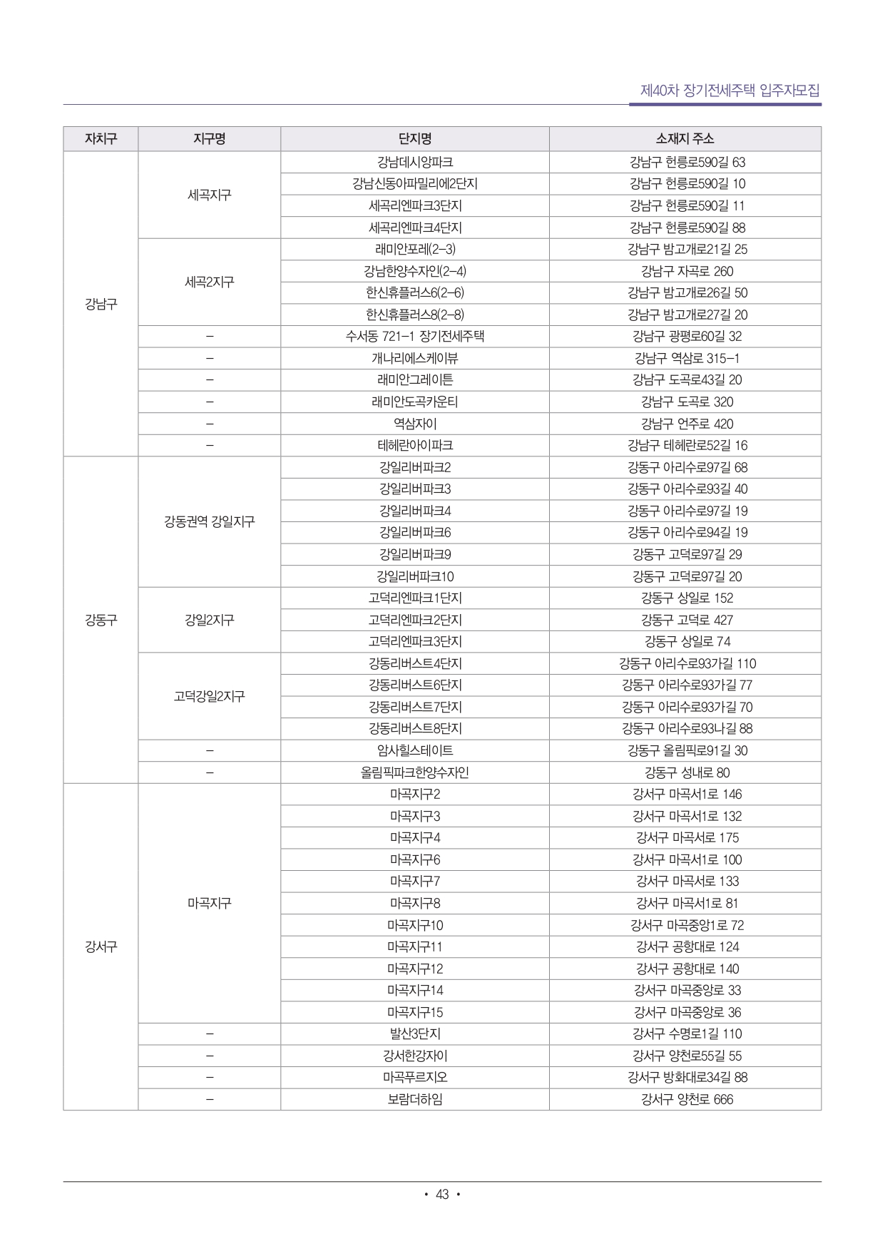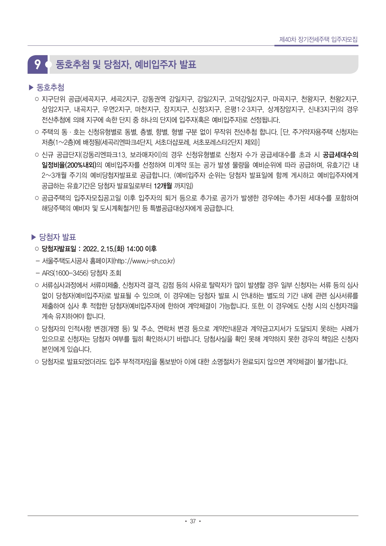 제40차 장기전세주택 입주자 모집공고 서울주택도시공사