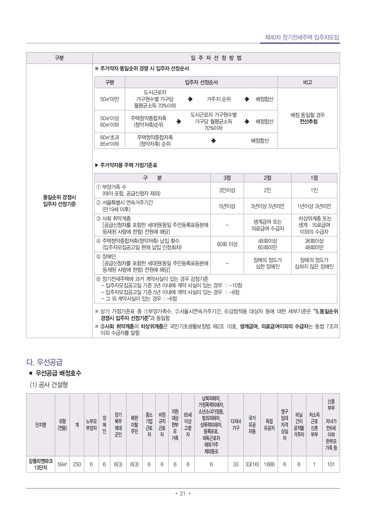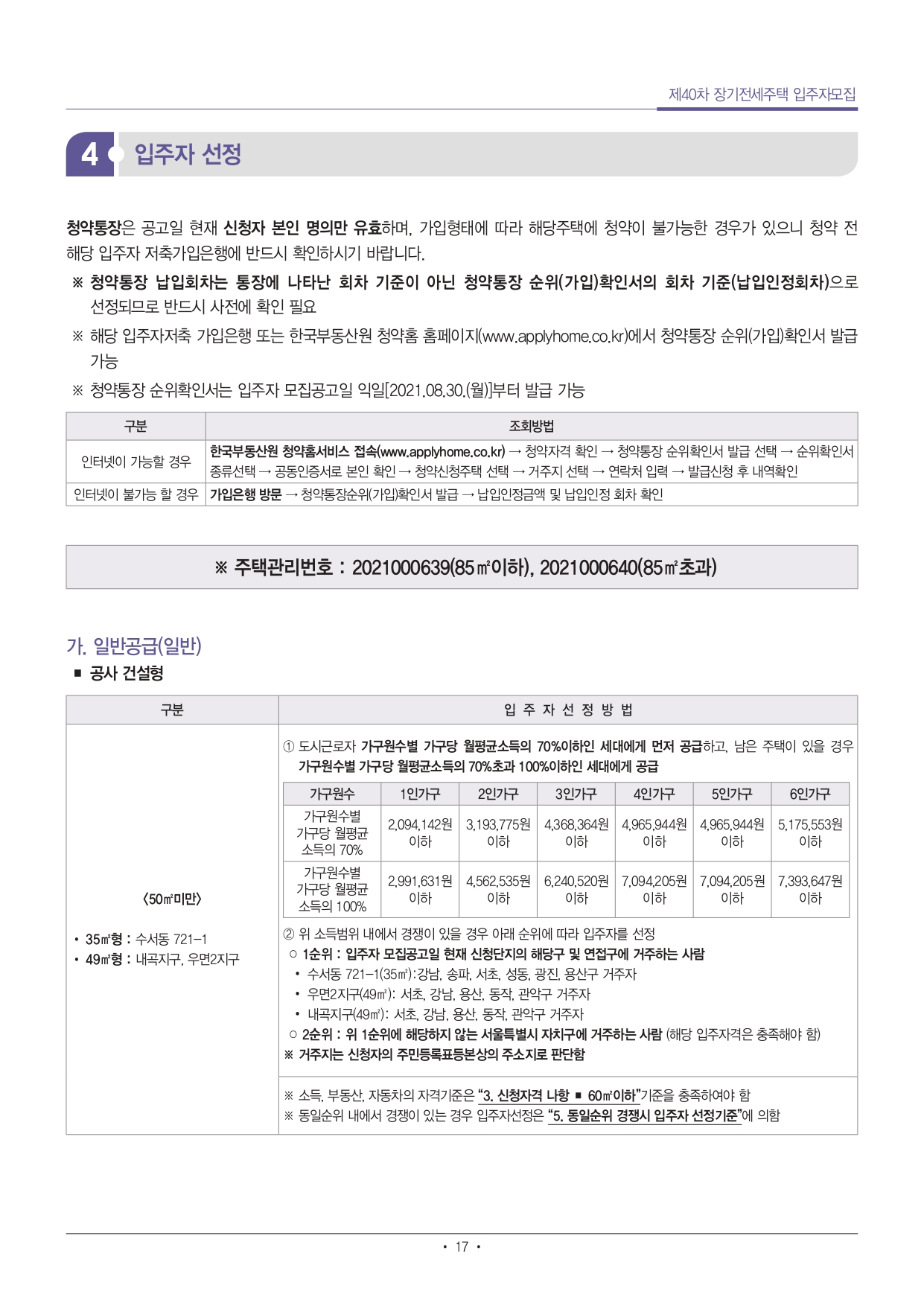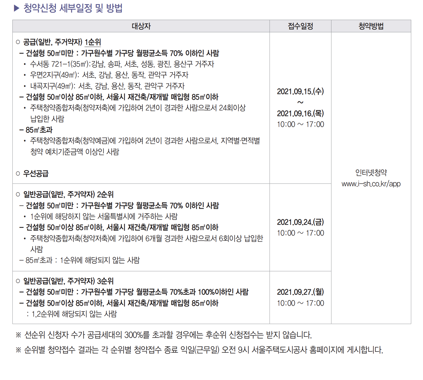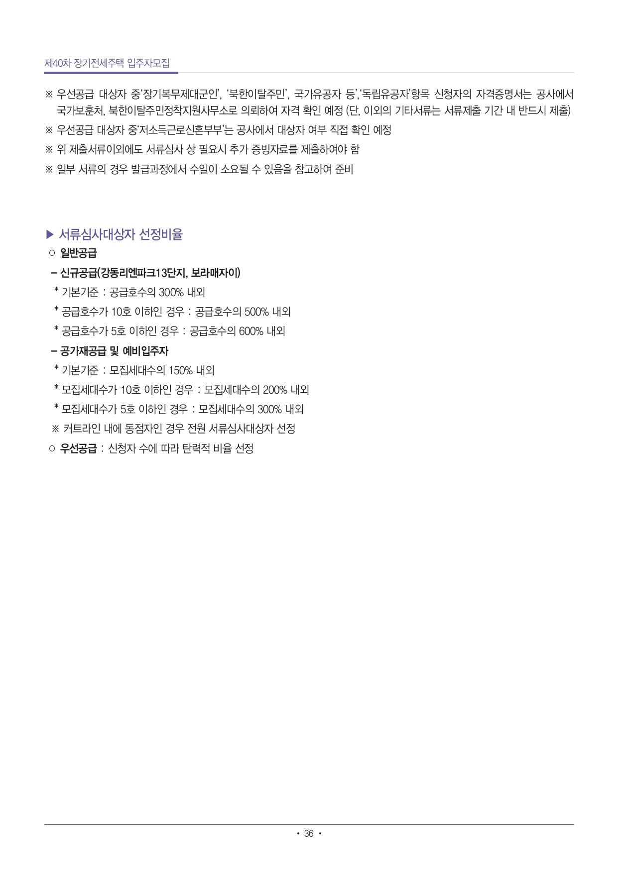 ■ 우선공급 신청자 중 탈락자는 동일단지, 동일면적의 일반공급 모집이 있는 경우(일반공급 입주자 선정기준 충족하는 경우) 별도의 신청절차 없이 일반공급 신청자로 전환됩니다.