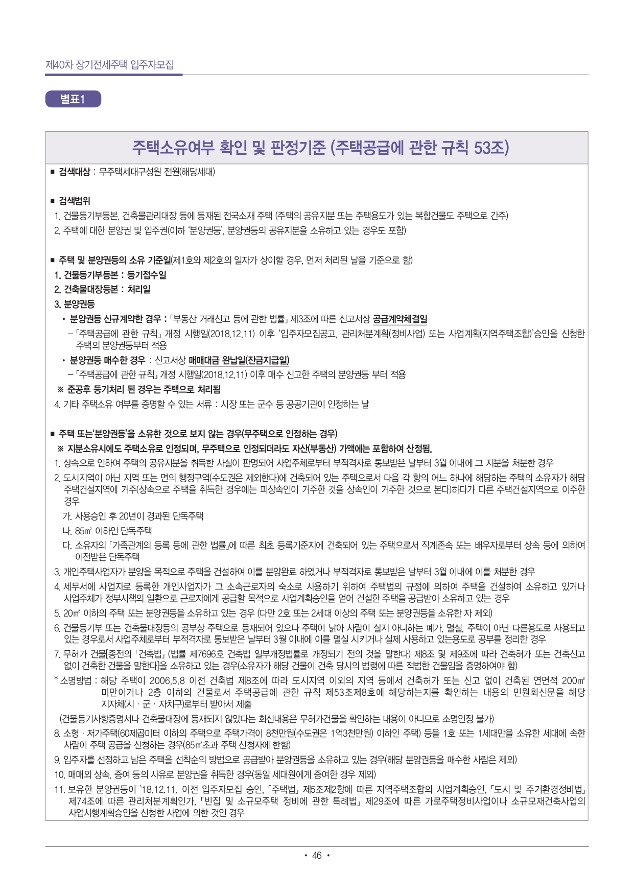 ■ 2018.12.11 개정된 「주택공급에 관한 규칙」에 따라‘세대’및‘무주택세대구성원’의 정의가 변경되었으며, ‘분양권 및 입주권’ (이하‘분양권 등’)을 소유한 경우도 주택소유로 인정될 수 있으니 세부사항은 공고문 [별표1]을 반드시 확인하시기 바랍니다.