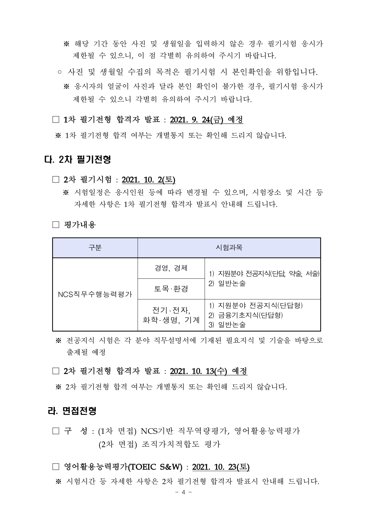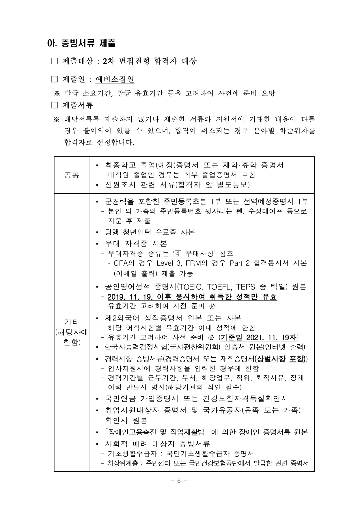 * 단, 지역전문가 전형으로 지원시 경영·경제 분야로 필기시험 응시