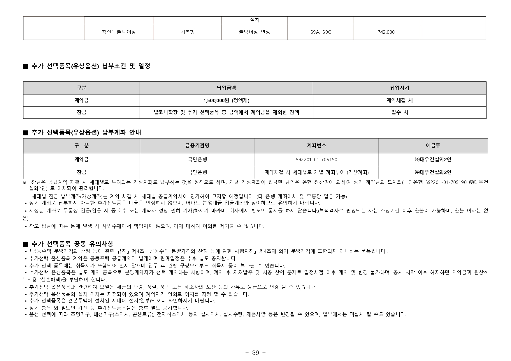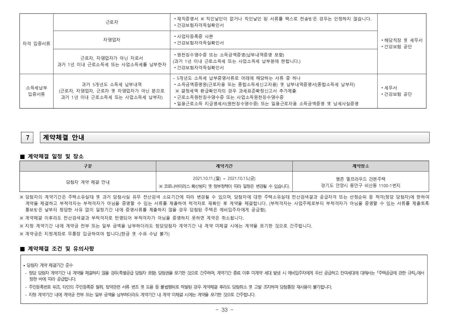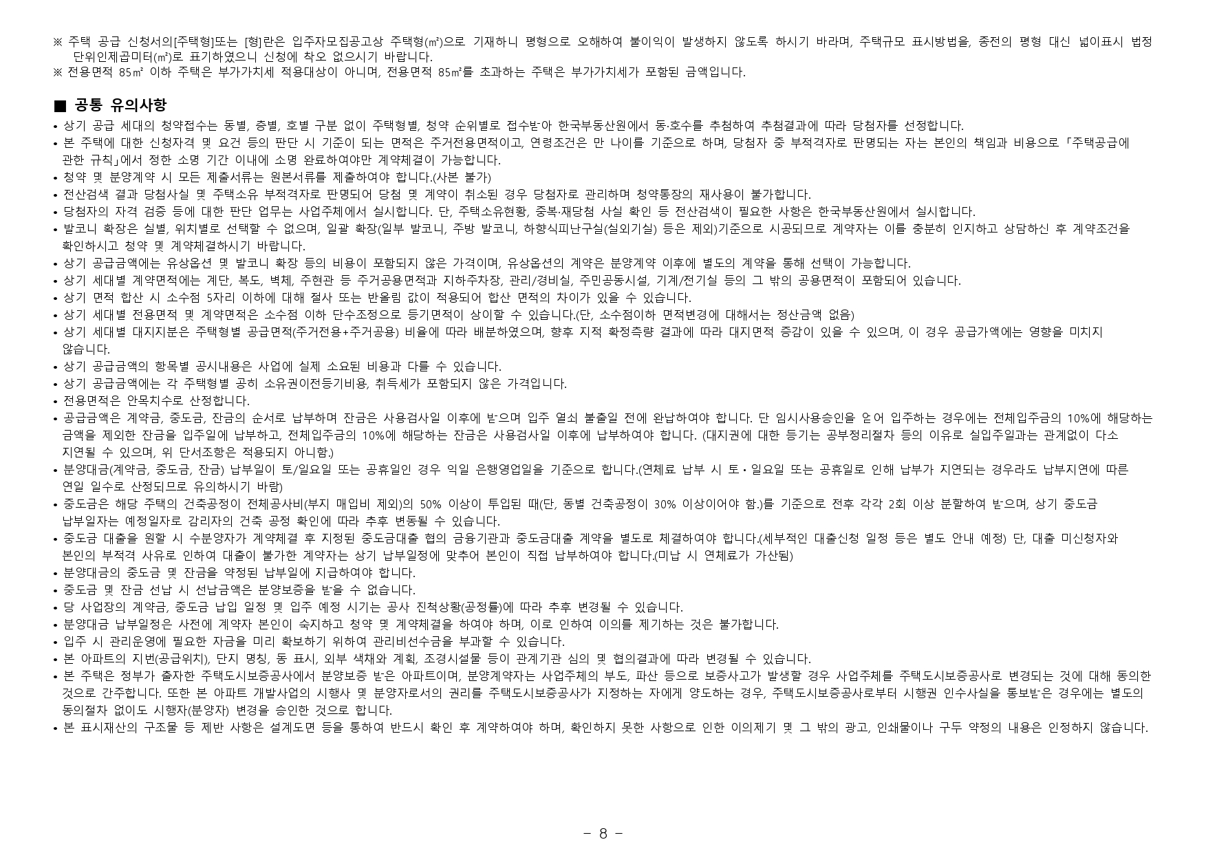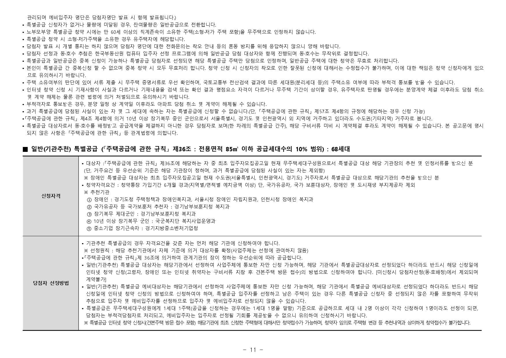 - 전매금지 및 재당첨제한 등의 사항은 입주자모집공고일 시점 관련 법규의 적용을 받으며, 향후 관련 법규 개정에 따라 변경 될 수 있습니다.