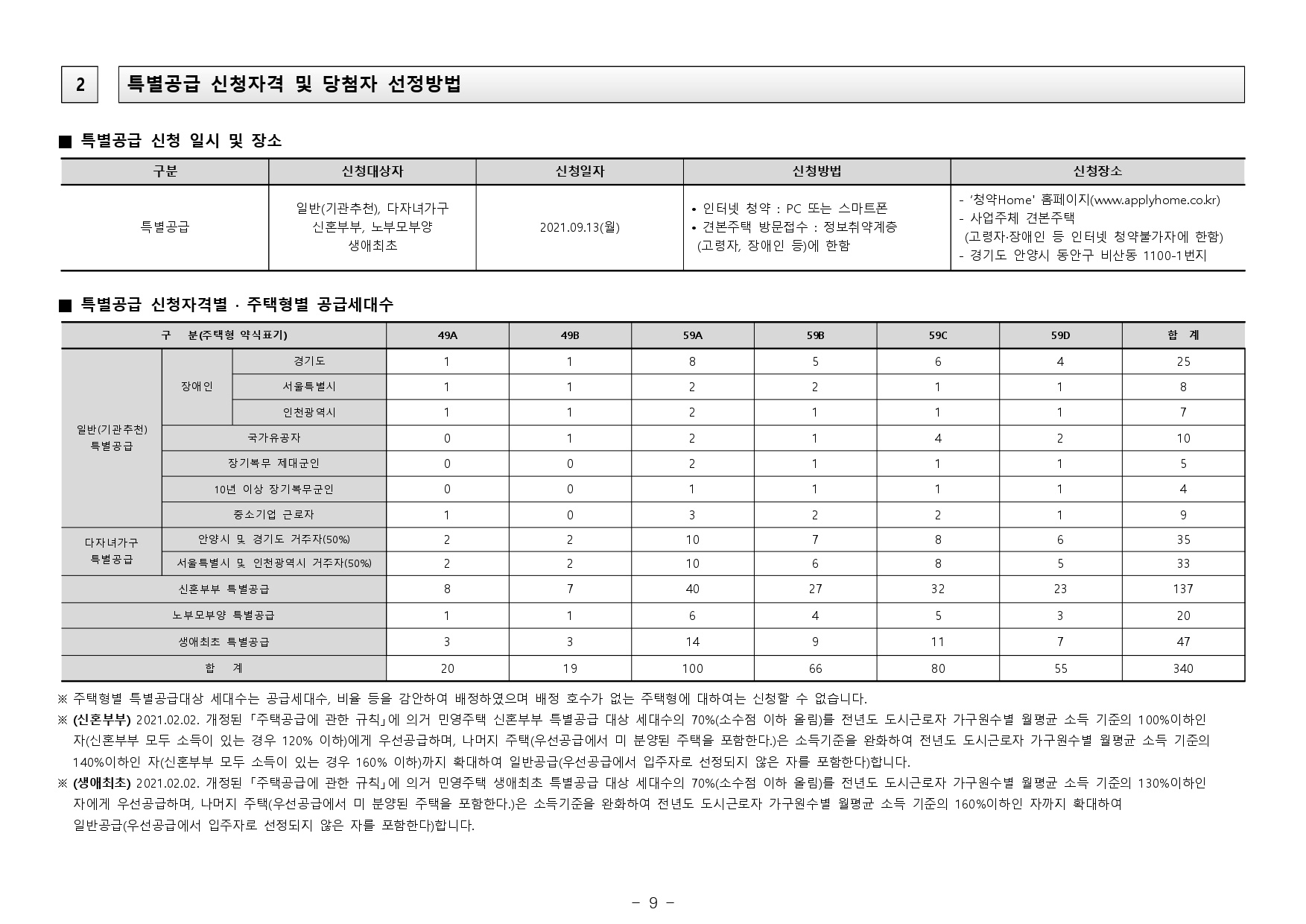 ■ 본 아파트의 최초 입주자모집공고일은 2021.09.03.(금) 입니다.(청약자격조건의 기간, 나이, 지역우선 등의 청약자격조건 판단기준일입니다.)