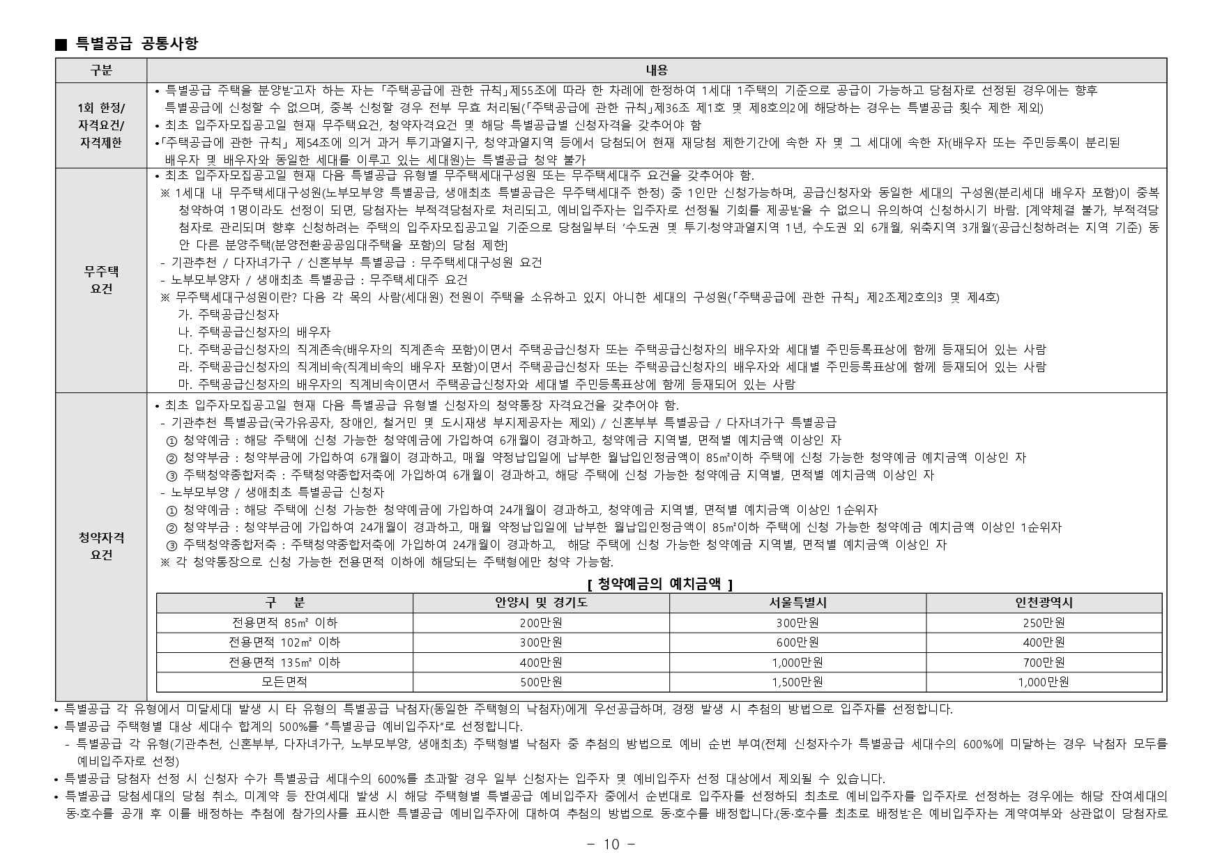 - 특별공급 주택 : 특별공급으로 주택을 공급받은 경우 「주택법」제64조 및 「주택법 시행령」 제73조 및 동법 별표3에 의거 주택 공급 입주자로 선정된 날부터 5년간 전매가 금지됩니다. (단, 향후 「주택법」 및 관련법령 개정에 따라 조정될 수 있음)