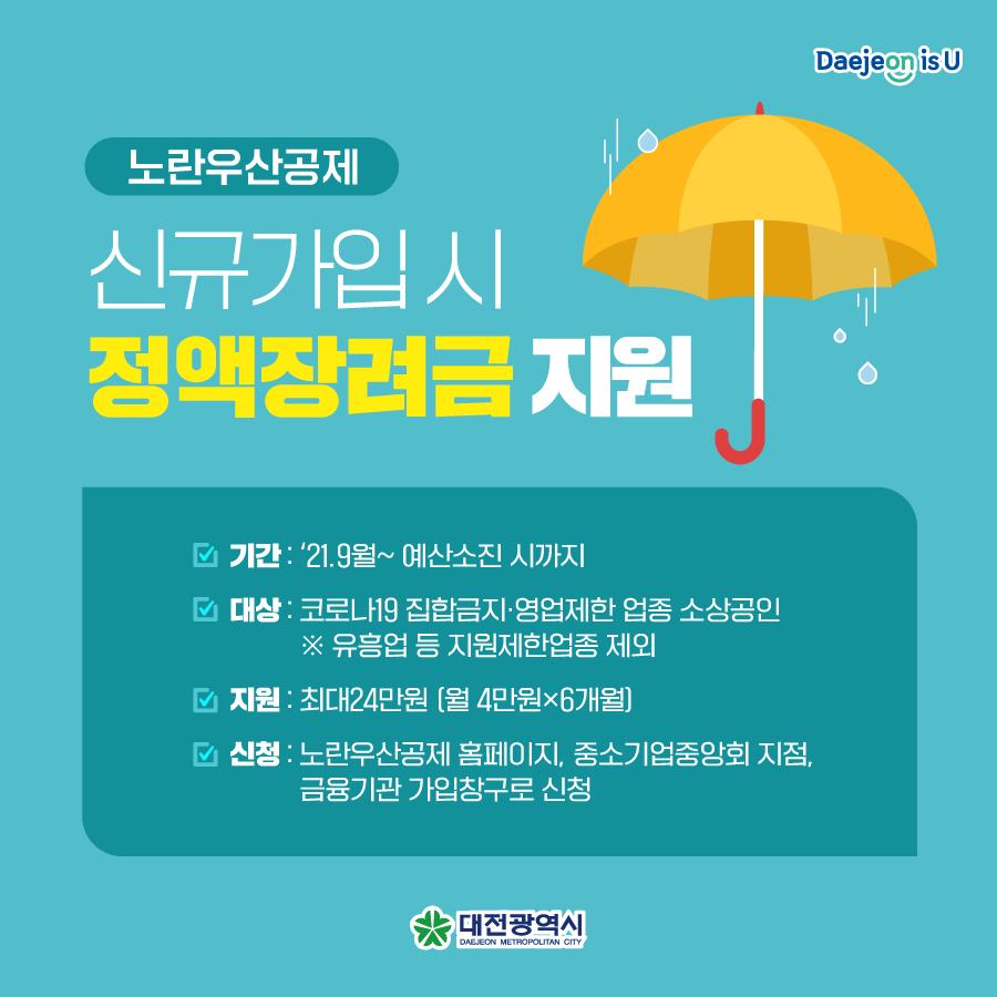 코로나로 집합금지·영업제한 소상공인 3만6000여 명 대상으로 8월 31일부터 업체당 공공요금(50만원) 지원. 1차 신속지급 대상(대전시 보유) 별도 신청없이 입금. 2차 신청·확인지급은 1차 지급에서 누락된 소상공인 대상.