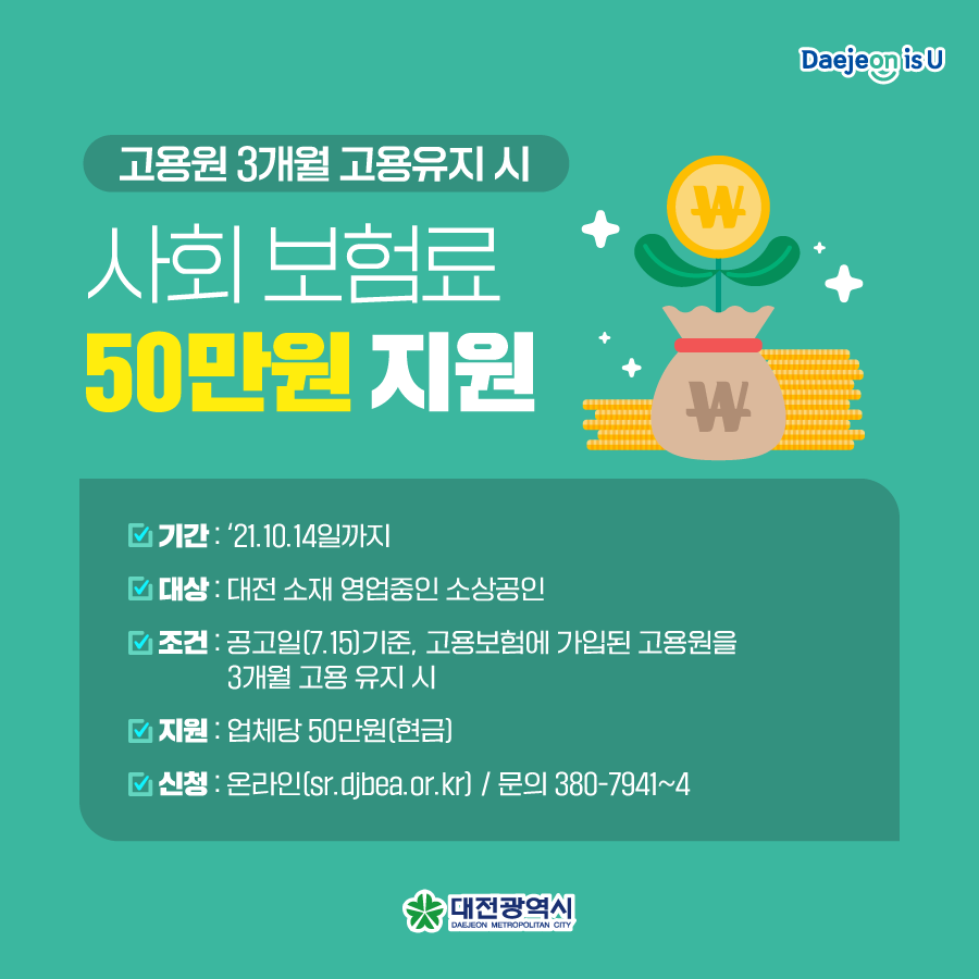 대전시 소상공인 종합대책 11종, 소상공인 사회보험료, 카드수수료, 경영안전지원 등