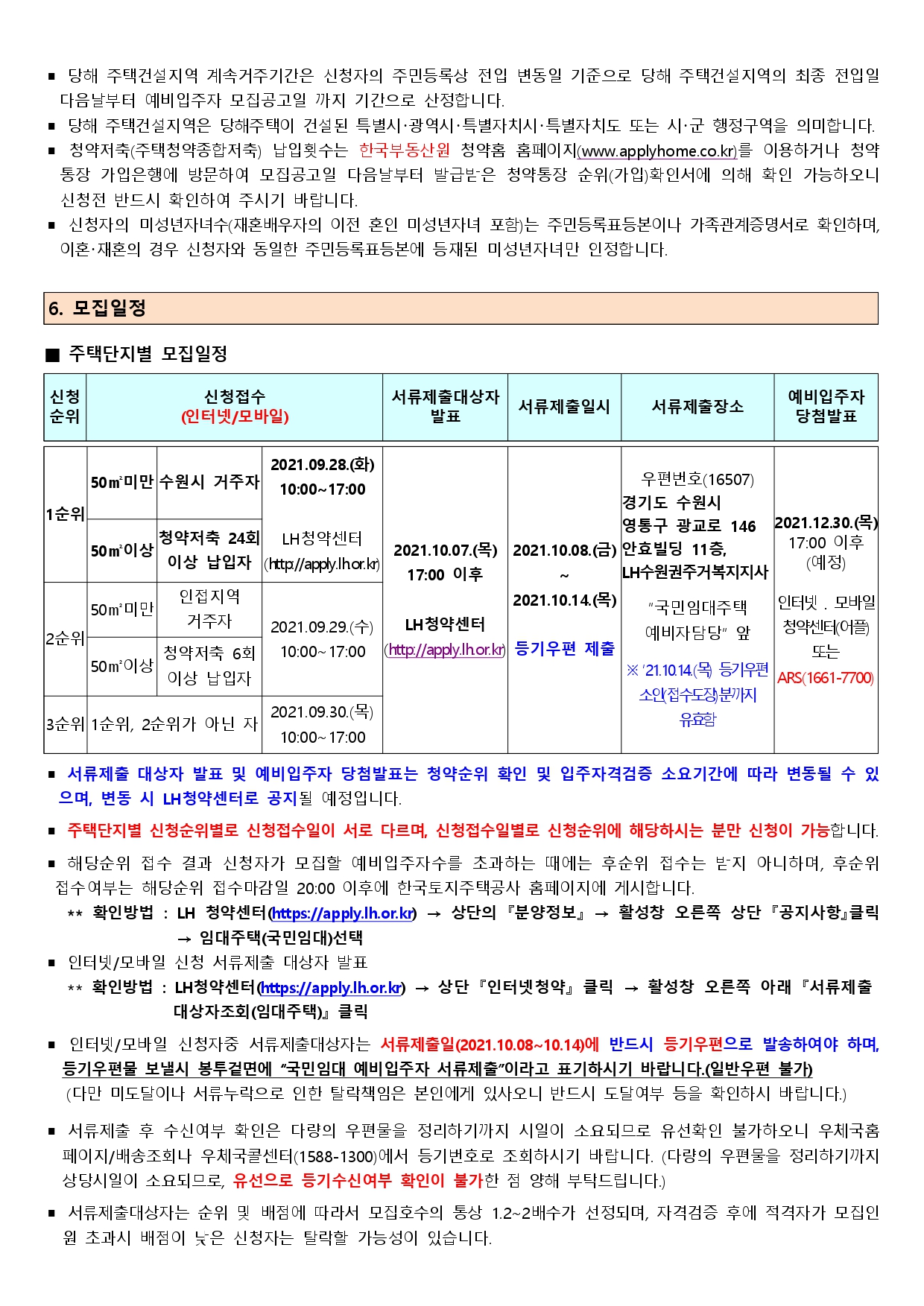 ▪ 순위별로 청약일자가 지정된 경우 반드시 해당순위 날짜에 신청하여야 하며 다른 순위 날짜에 접수 시에는 모두 부적격 처리됩니다.(예를 들면 1순위자가 1순위 접수일인 28일에 접수하지 않고 2순위 접수일인 29일에 또는 3순위 접수일인 30일에 접수시 부적격 처리)