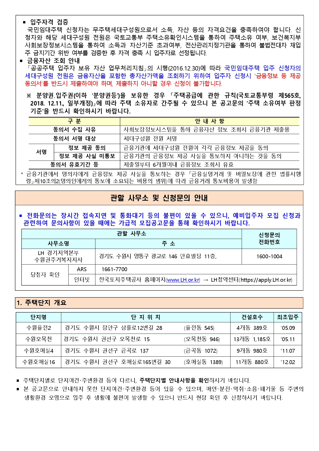 수원시 지역 국민임대주택 예비 입주자 모집공고(9.6)