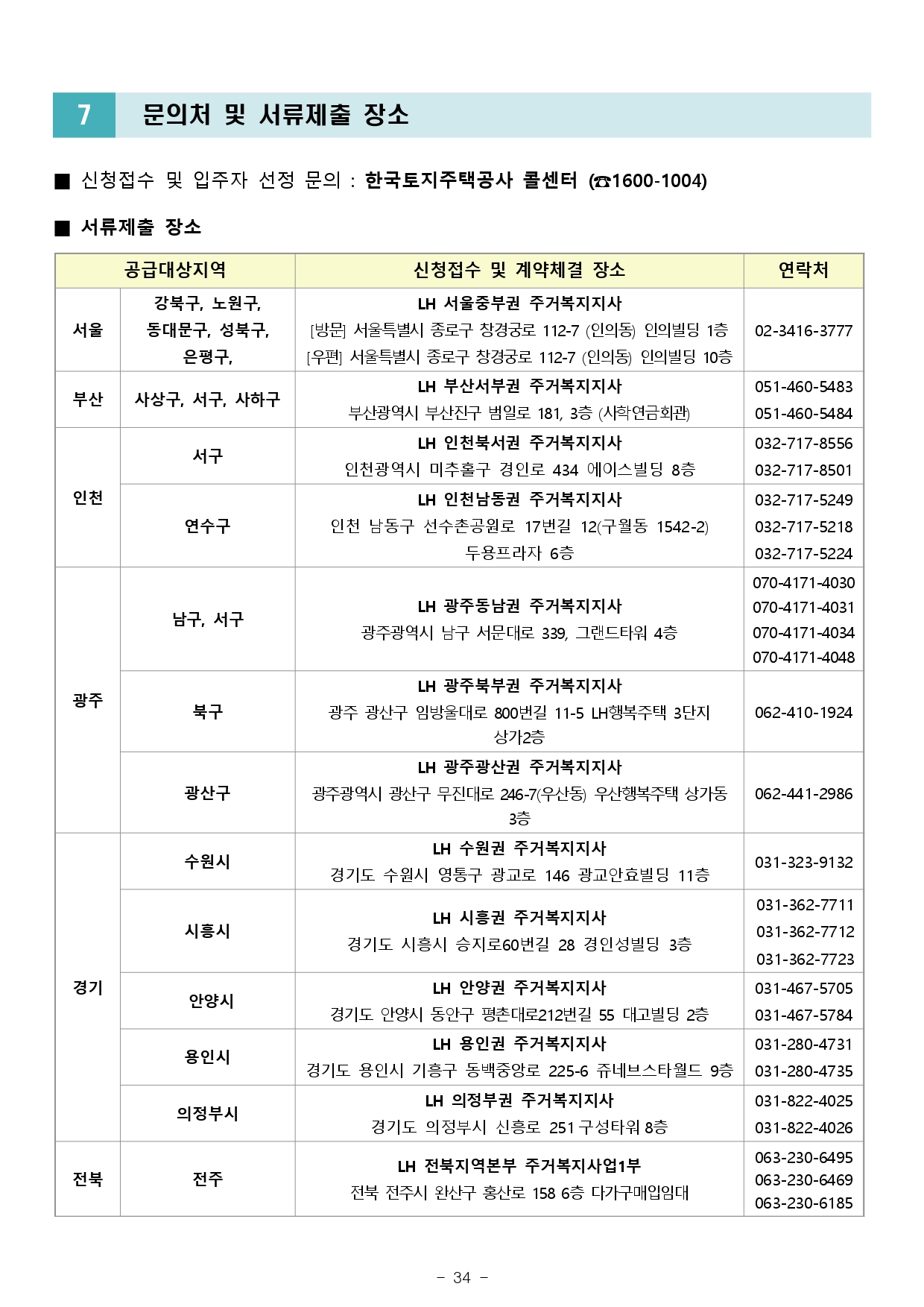 ▪ 한국토지주택공사에서는 콜센터(1600-1004) 등을 통해 입주자 모집공고의 내용과 관련하여 자세한 안내가 이루어질 수 있도록 상담을 실시하고 있으나, 청약자 개인의 복잡한 상황에 대한 설명 누락 또는 부 정확한 정보 제공 등에 기인한 상담으로 불이익을 당하는 일이 가끔씩 발생하고 있습니다. 따라서 청약과 관련한 상담은 청약의 참고자료로만 활용하여 주시고 반드시 공고문을 읽어보시기 바랍니다.