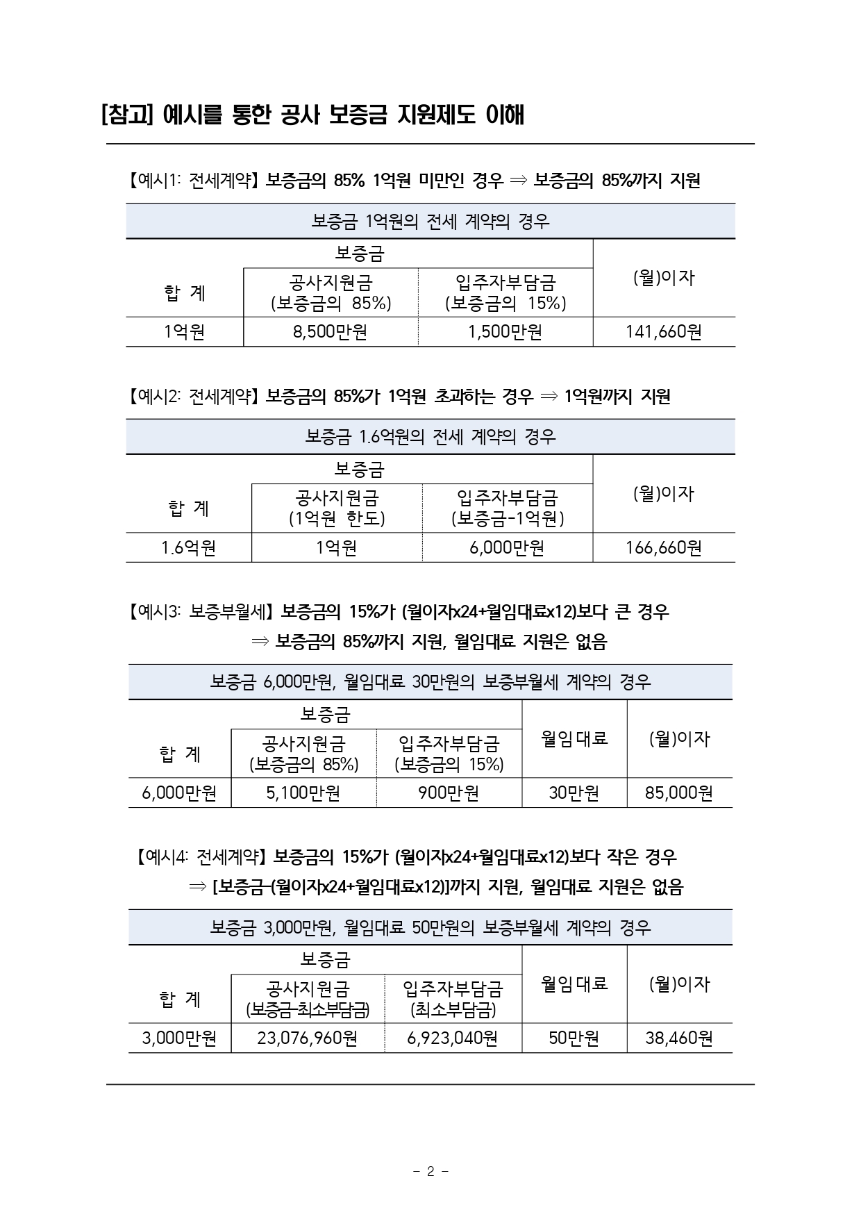 경기주택도시공사(이하 ‘공사’)와 입주대상자가 공동임차인으로서 입주대상자가 희망하는 주택의 소유자와 전세 또는 보증부월세 계약 체결 후, 공사가 입주대상자에게 보증 금 일부를 저렴한 이자로 지원하는 사업입니다.