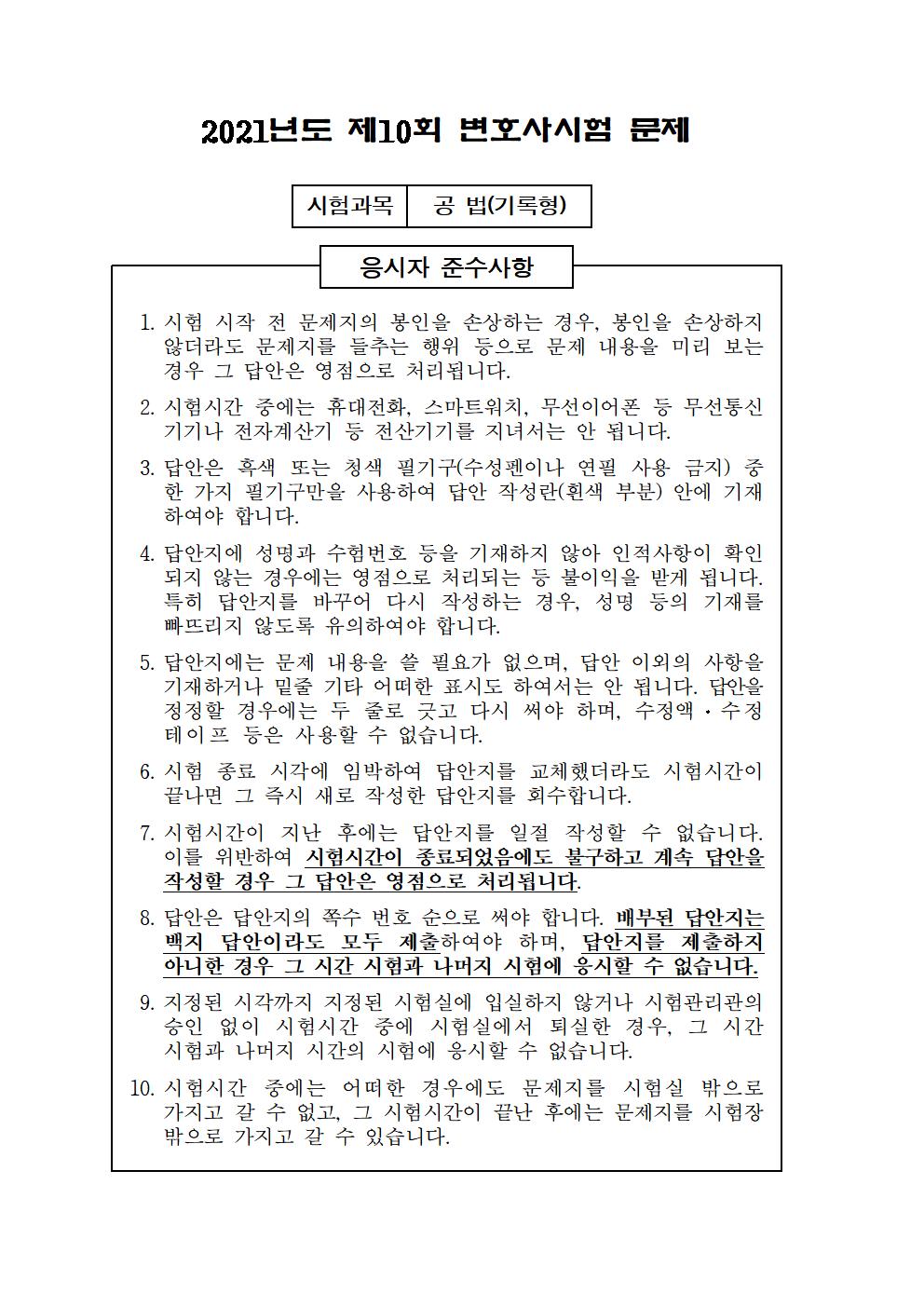 제10회 변호사 시험 기록형기출문제(공법) 안내 한눈에 살펴보세요