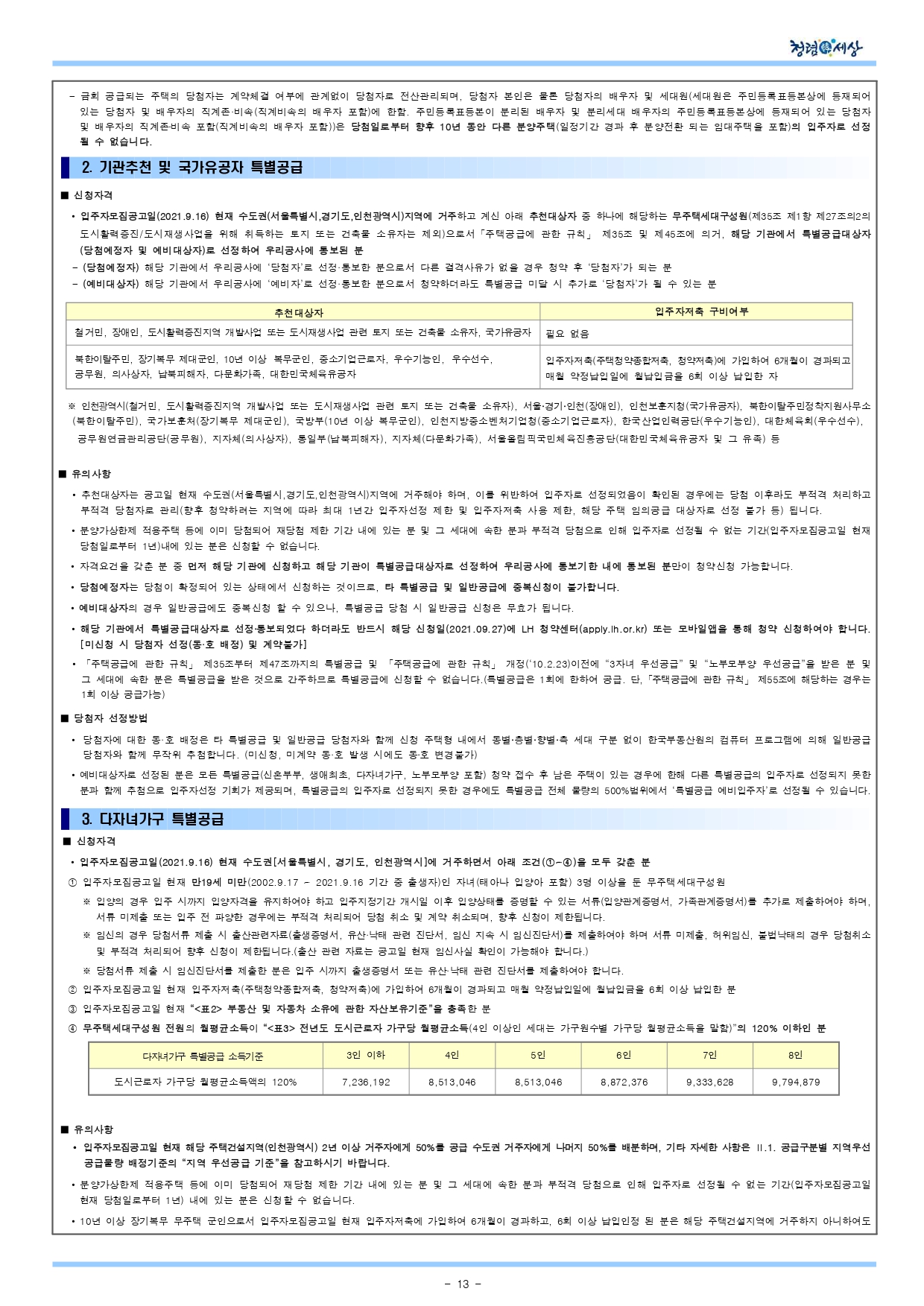 인천검단 AA13-1,2 블록 공공분양주택 입주자 모집공고(2021.9.16) 안내입니다.