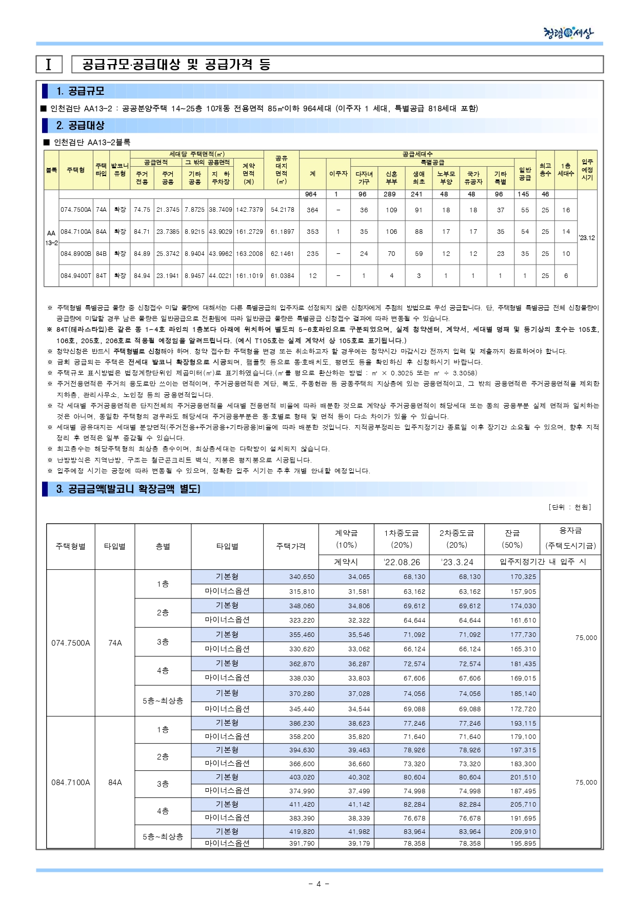 ❚공급대상 : AA13-2블록 공공분양주택 964세대 (전용면적 74m² 364세대, 84m² 600세대)