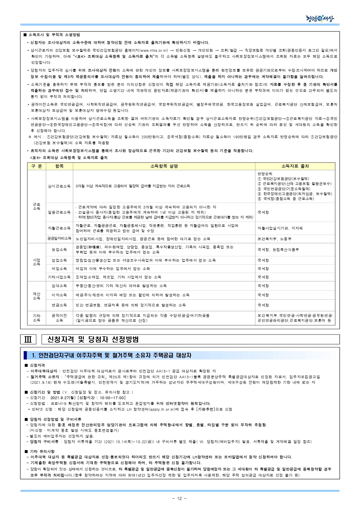 인천검단 AA13-1,2 블록 공공분양주택 입주자 모집공고(2021.9.16) 안내