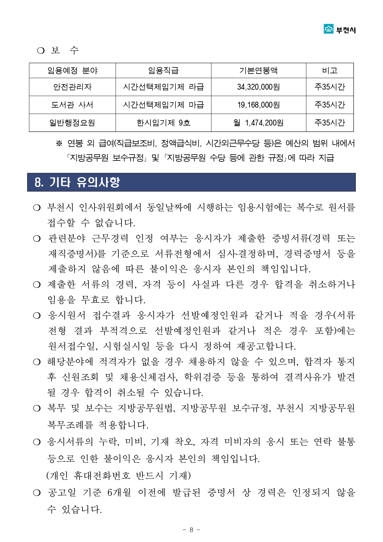 | 도서관 사서 (원미도서관) | 시간선택제 임기제 마급 (주 35시간) | 1명 | 2년 |