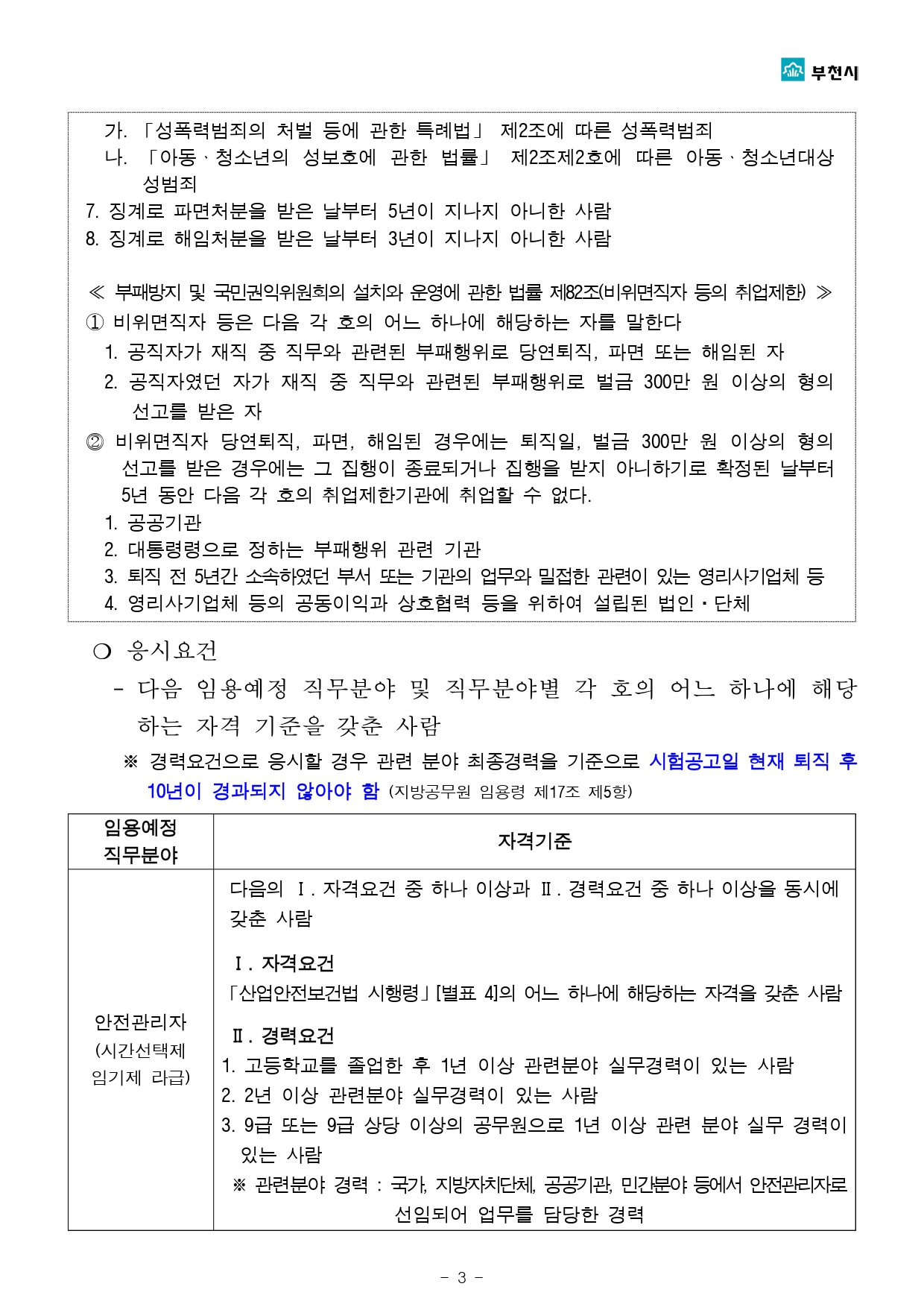 | 안전관리자 (노무복지과) | 시간선택제 임기제 라급 (주 35시간) | 1명 | 2년 |