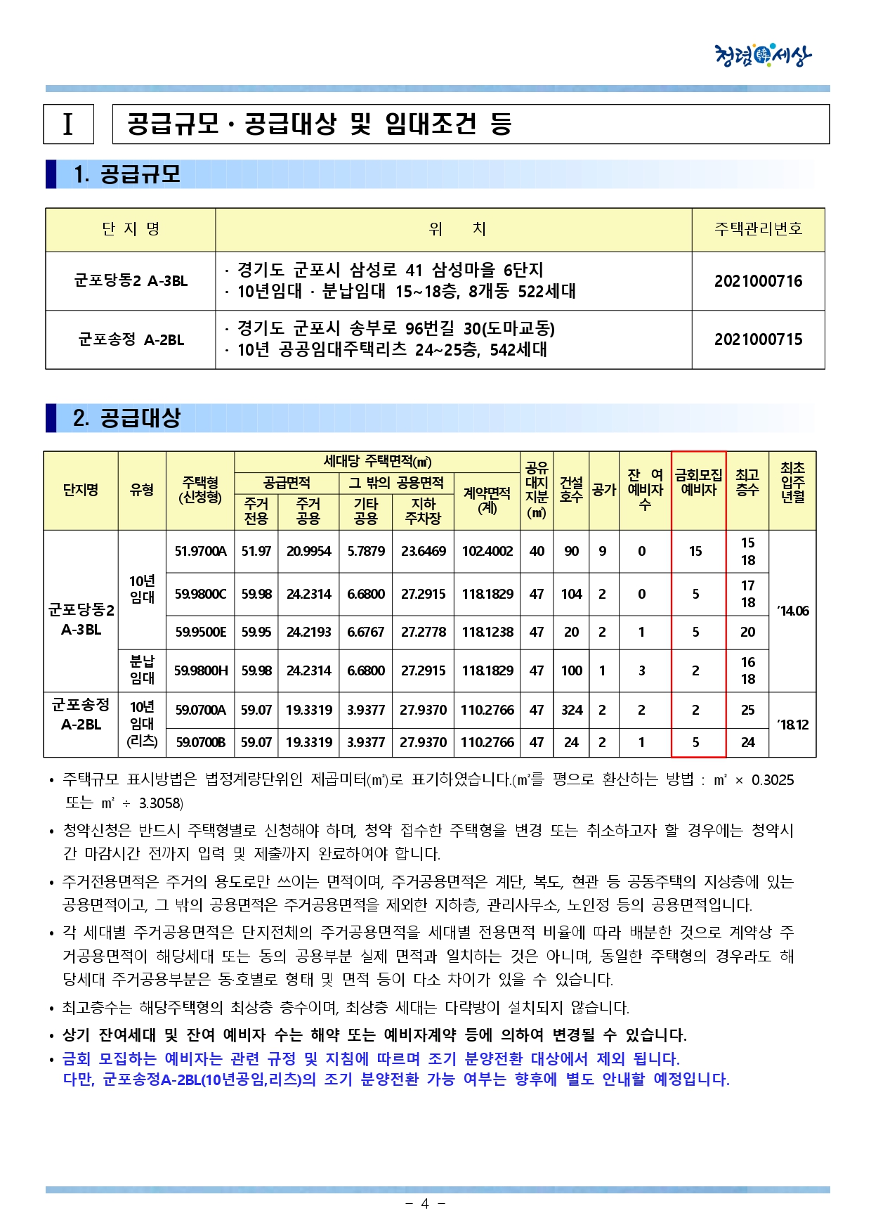 군포지역 분납, 공공임대주택 예비 입주자 공고(21.09.17)