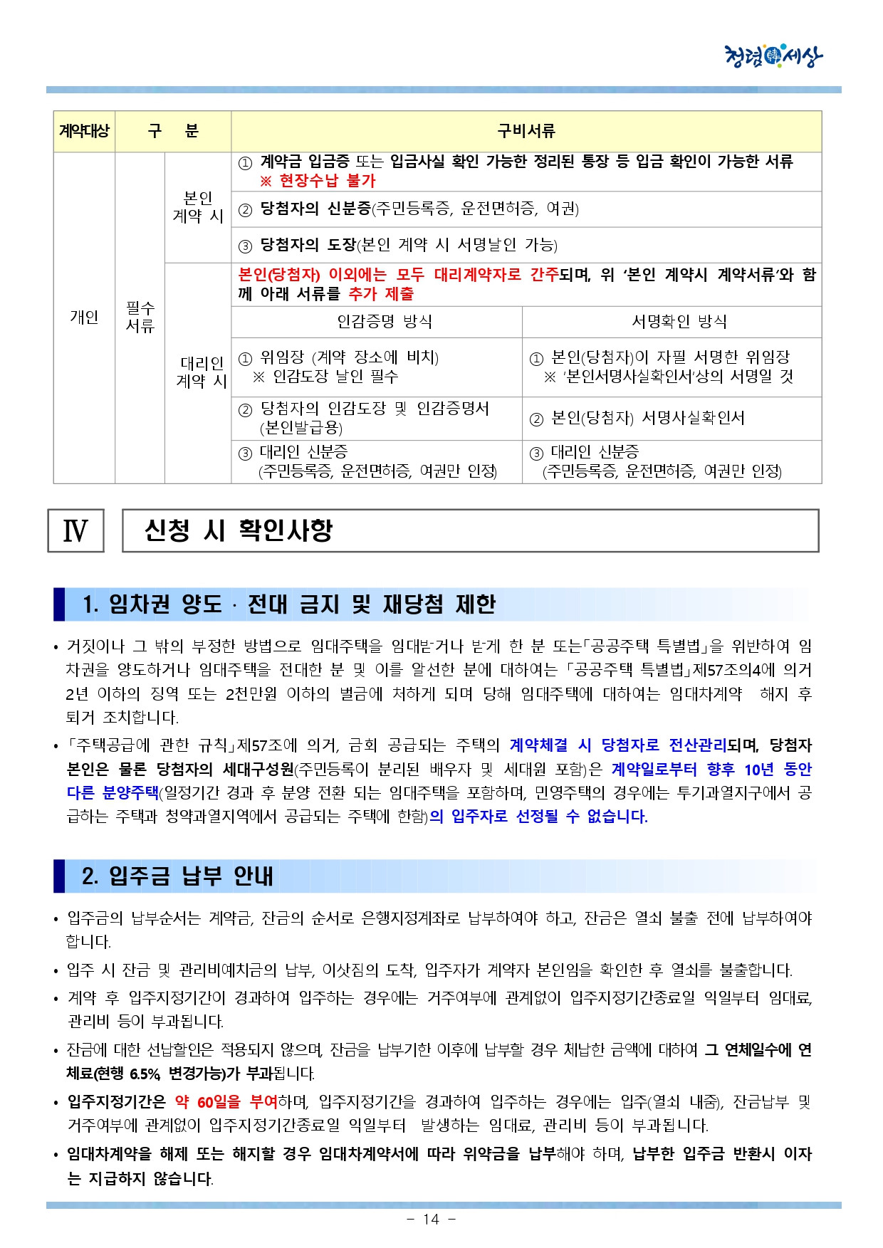 • 본 예비입주자모집공고문은 현재 공가 및 향후 해약이 발생할 경우를 대비하여 모집하는 것으로 예비입주자로 선정되었다 하더라도 예비순번에 따라 실제 입주 시까지는 상당기간이 소요될 수 있으며, 예비입주자의 지위는 금회 공급하는 아파트의 임대기간 내에만 그 자격이 유지되고 분양전환이 개시되면 예비입주자로서의 지위는 자동소멸됩니다.