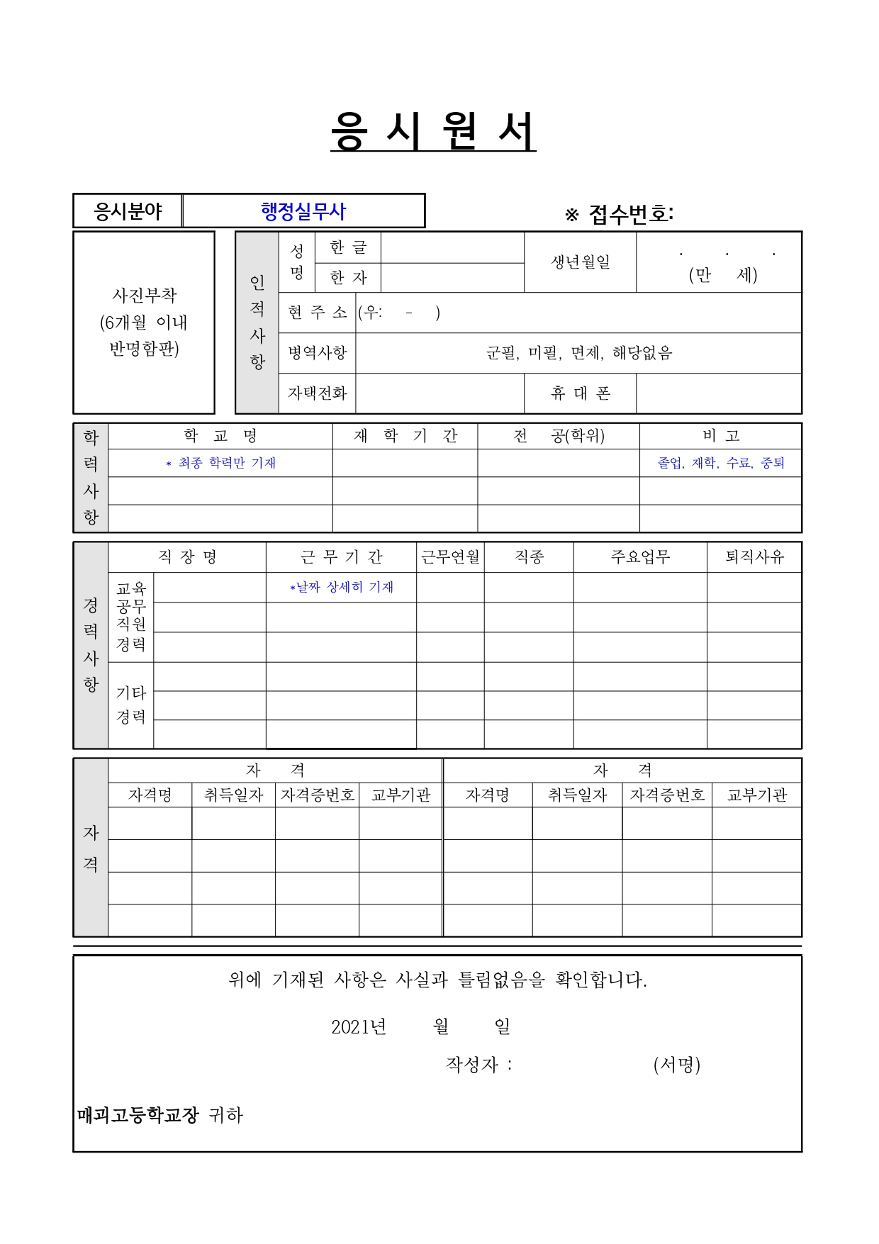 매괴고등학교에서 근무할 교육공무직원(행정실무사) 기간제근로자 채용 계획을 아래와 같이 공고 합니다.
