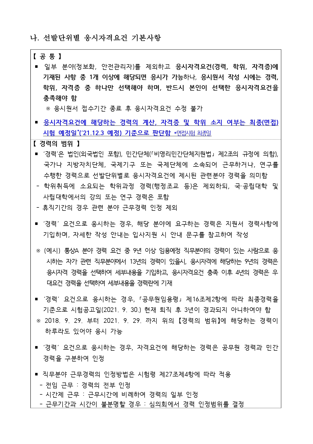 공무원임용시험령 제3조 및 제47조에 따라 우수 인재의 공직유치를 위한 국가공무원 경력경쟁채용시험을 다음과 같이 공고하여 시행하오니 많은 응시 바랍니다.