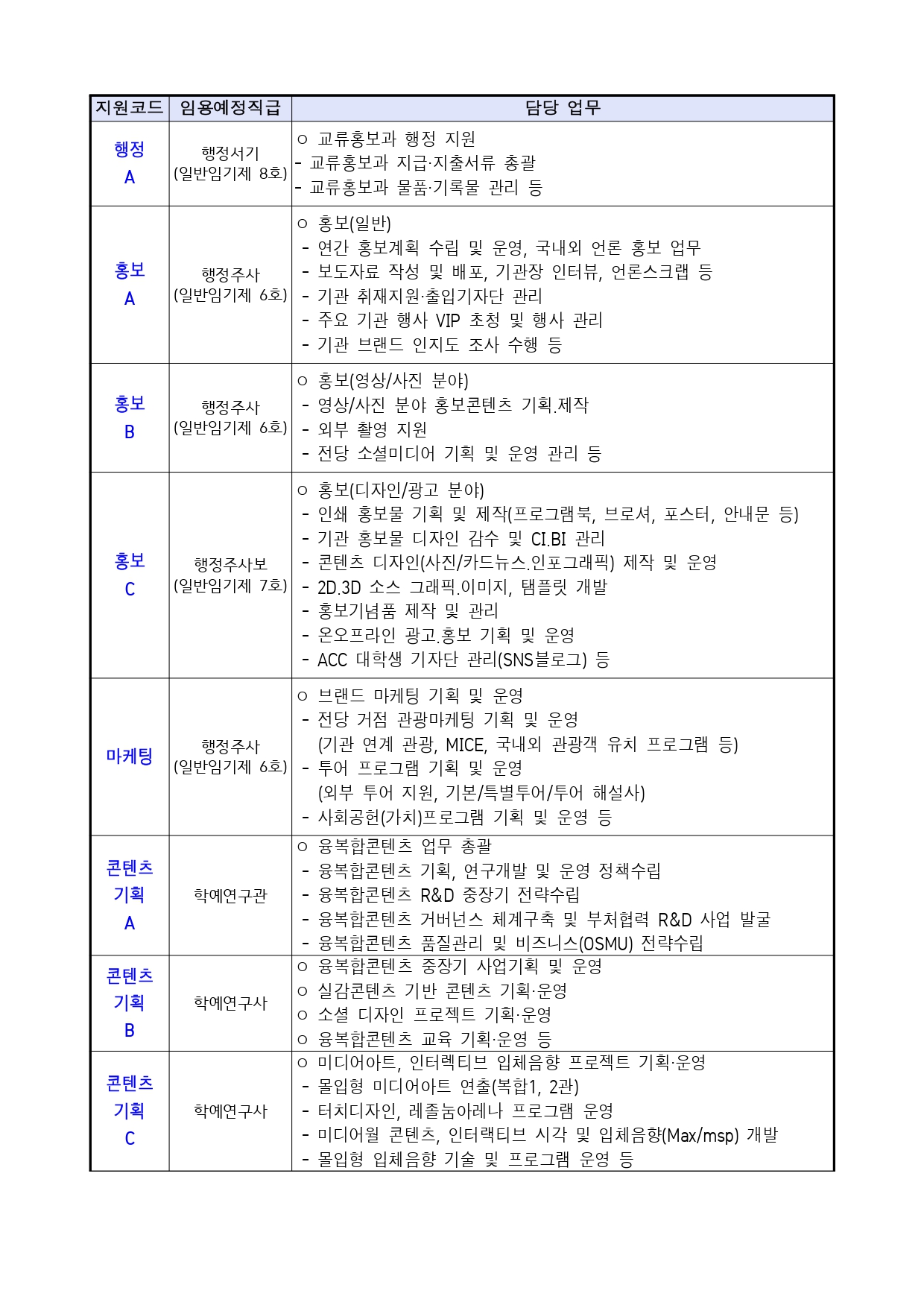 | 마케팅 | 행정주사 (일반임기제 6호) |