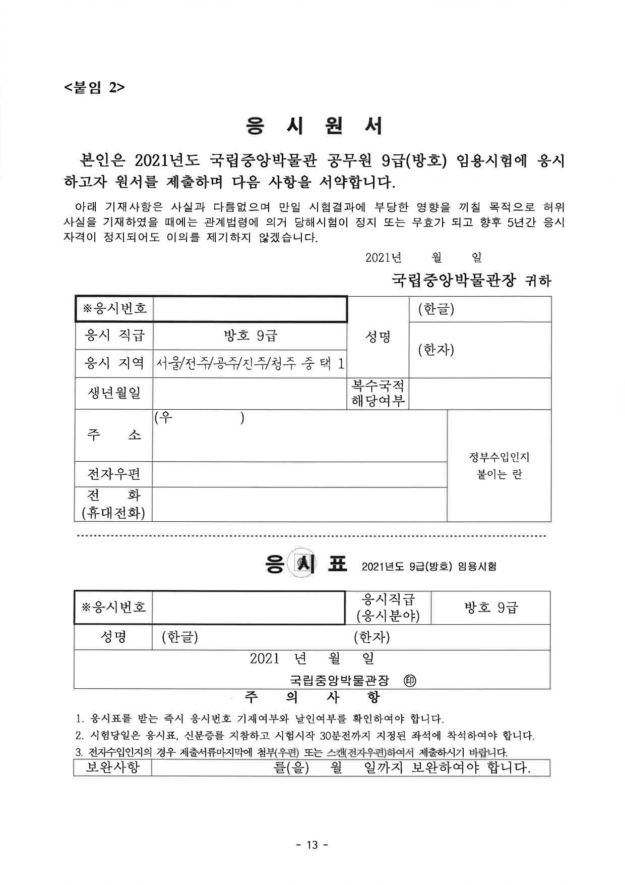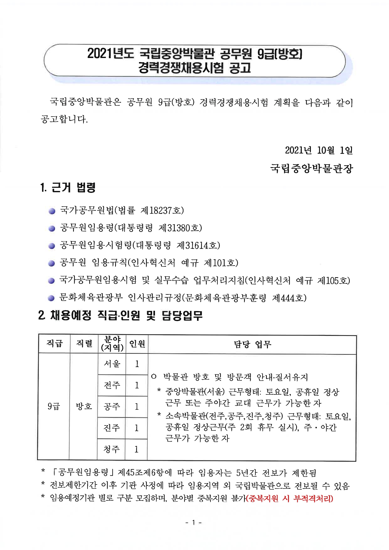 2021년도 국립중앙박물관 공무원 9급(방호) 경력경쟁채용시험 공고.hwp