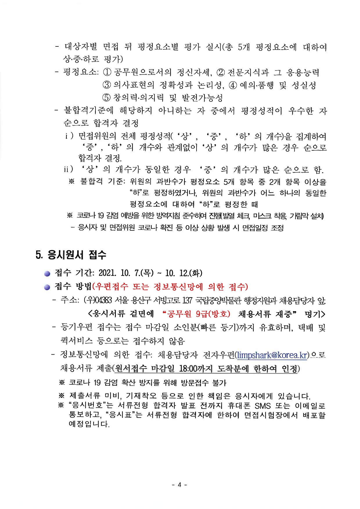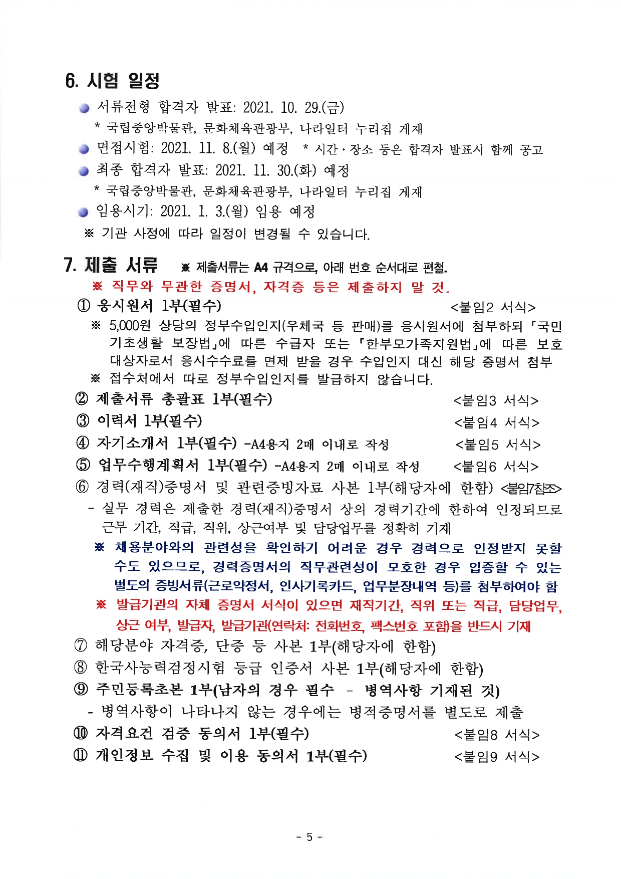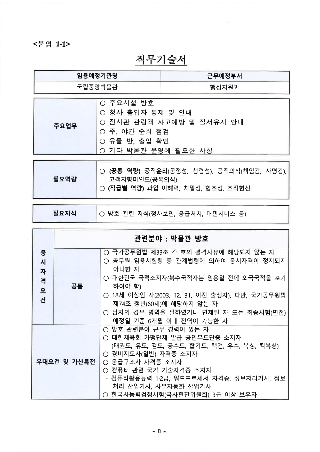 2021년도 국립중앙박물관 공무원 9급(방호) 경력경쟁채용시험 공고