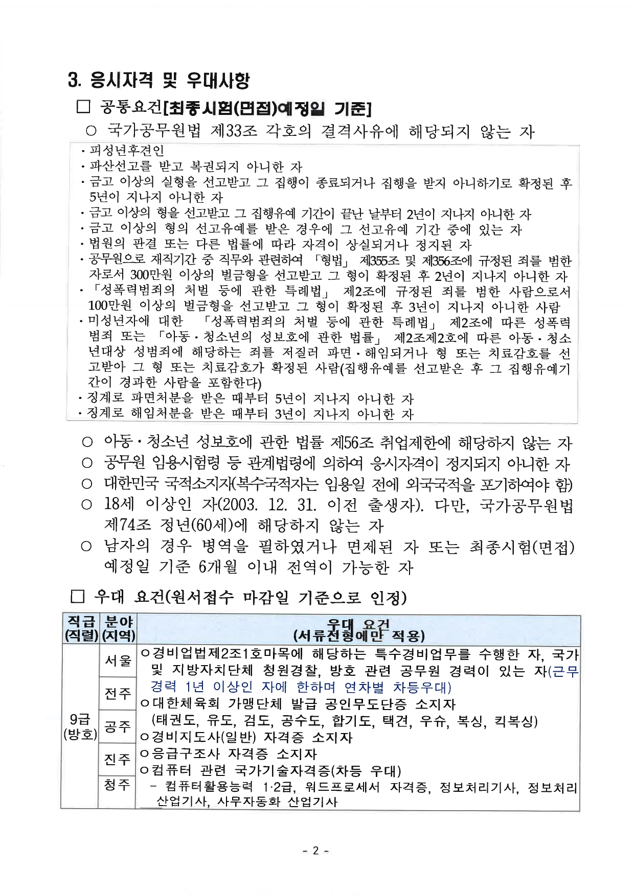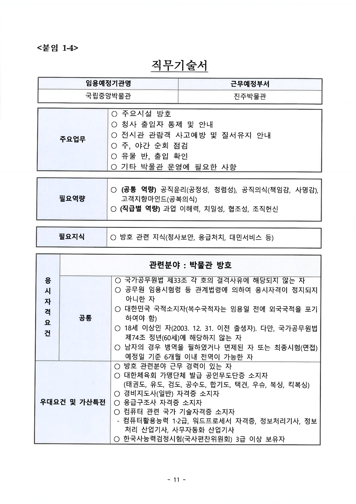 국립중앙박물관은 공무원 9급(방호) 경력경쟁채용시험 계획을 다음과 같이 공고합니다.