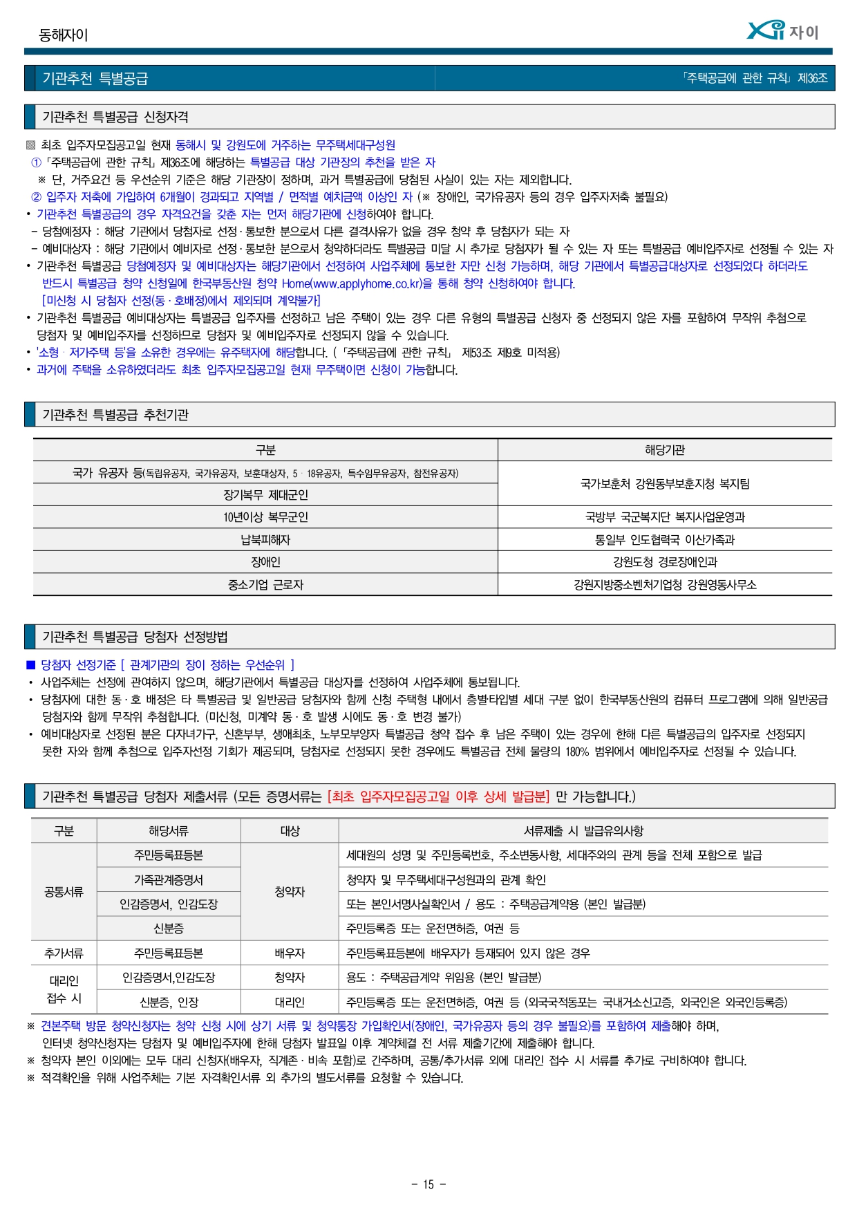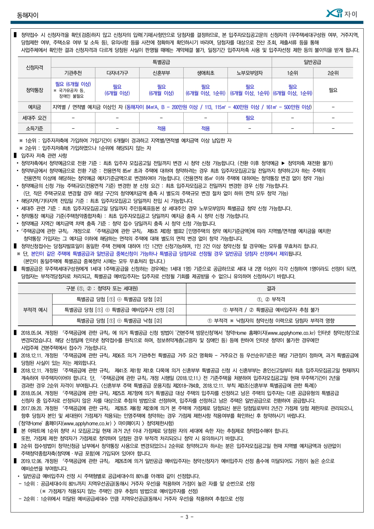 ▌ 해당 주택건설지역(동해시)은 「주택법」 제63조 및 제63조의2에 의한 비투기과열지구 및 비청약과열지역으로서, 본 아파트는 「주택공급에 관한 규칙」에 따라 1주택 이상 소유한 세대에 속한 분도 1순위 자격이 부여됩니다.