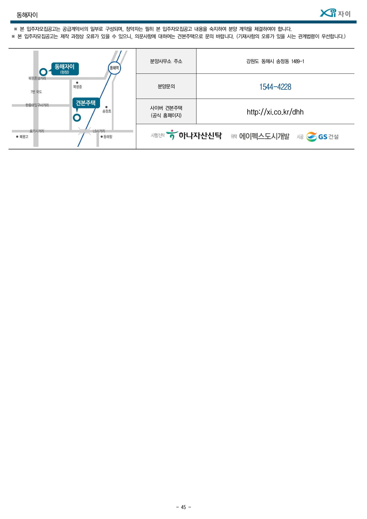 민간분양 동해자이 입주자 모집공고(2021.9.27)입니다.
