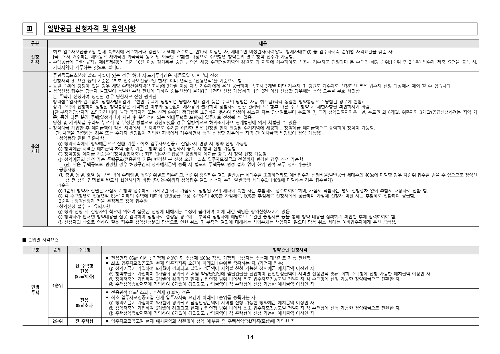 다만, 청약 신청자중 같은 순위 내에 경쟁이 있을 경우 해당 주택건설지역인 속초시 3개월 이상 거주자(2021년 07월 12일 이전 계속 거주자)가 우선합니다. - 2019.11.01 개정된 「주택공급에 관한 규칙」 제4조제5항 및 제23조 제2항 제7호에 따라 우선 공급 받으려는 경우에는 「출입국관리법」 제88조의 출입국 사실증명서를 사업주체에 제출하여야 합니다. 장기 해외체류자는 해당 주택건설지역 우선공급 대상자로 신청이 불가하며, 이를 위반하여 해당 주택건설지역 거주자로 청약하여 당첨된 경우에는 부적격 당첨자로 처리됩니다.