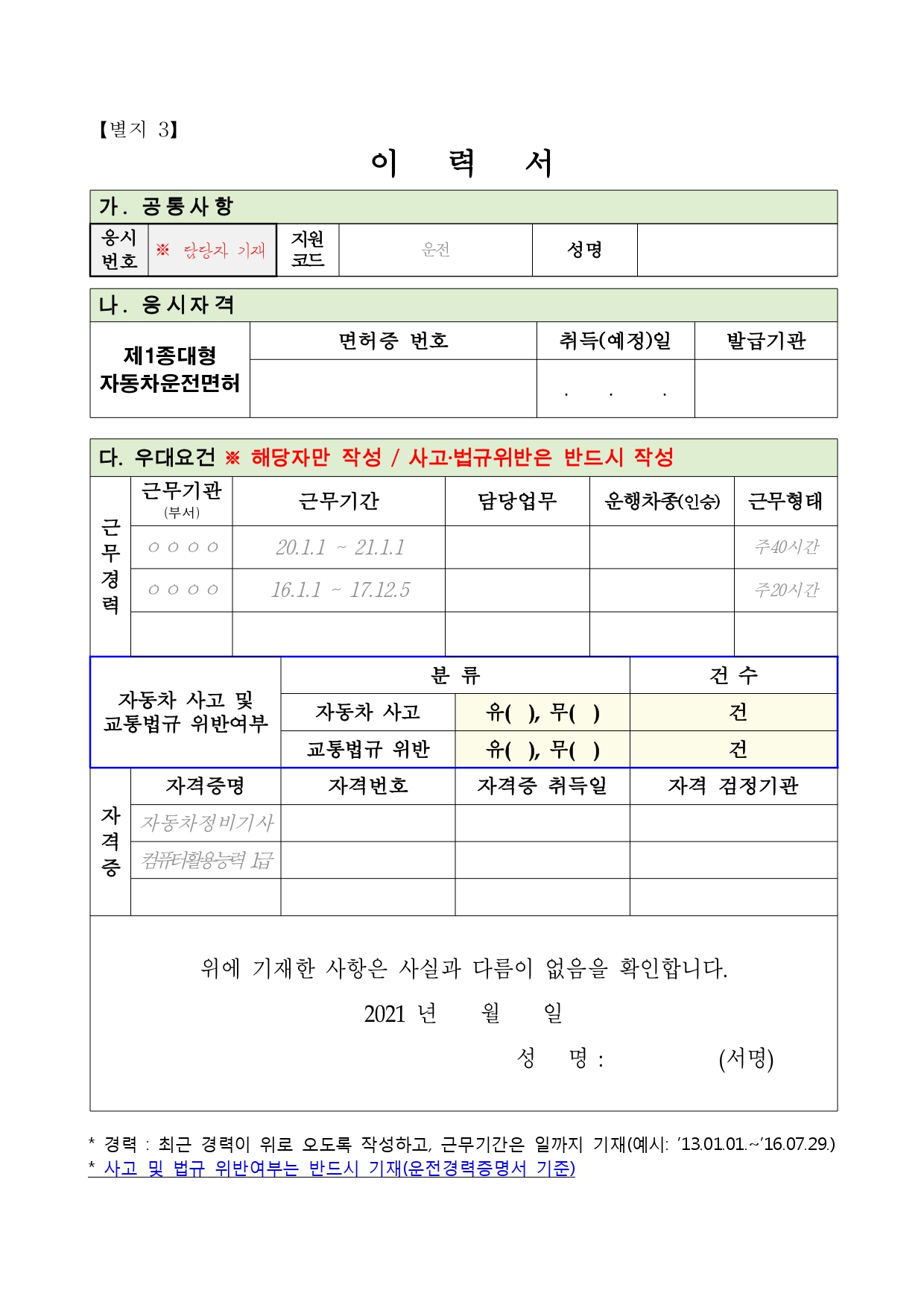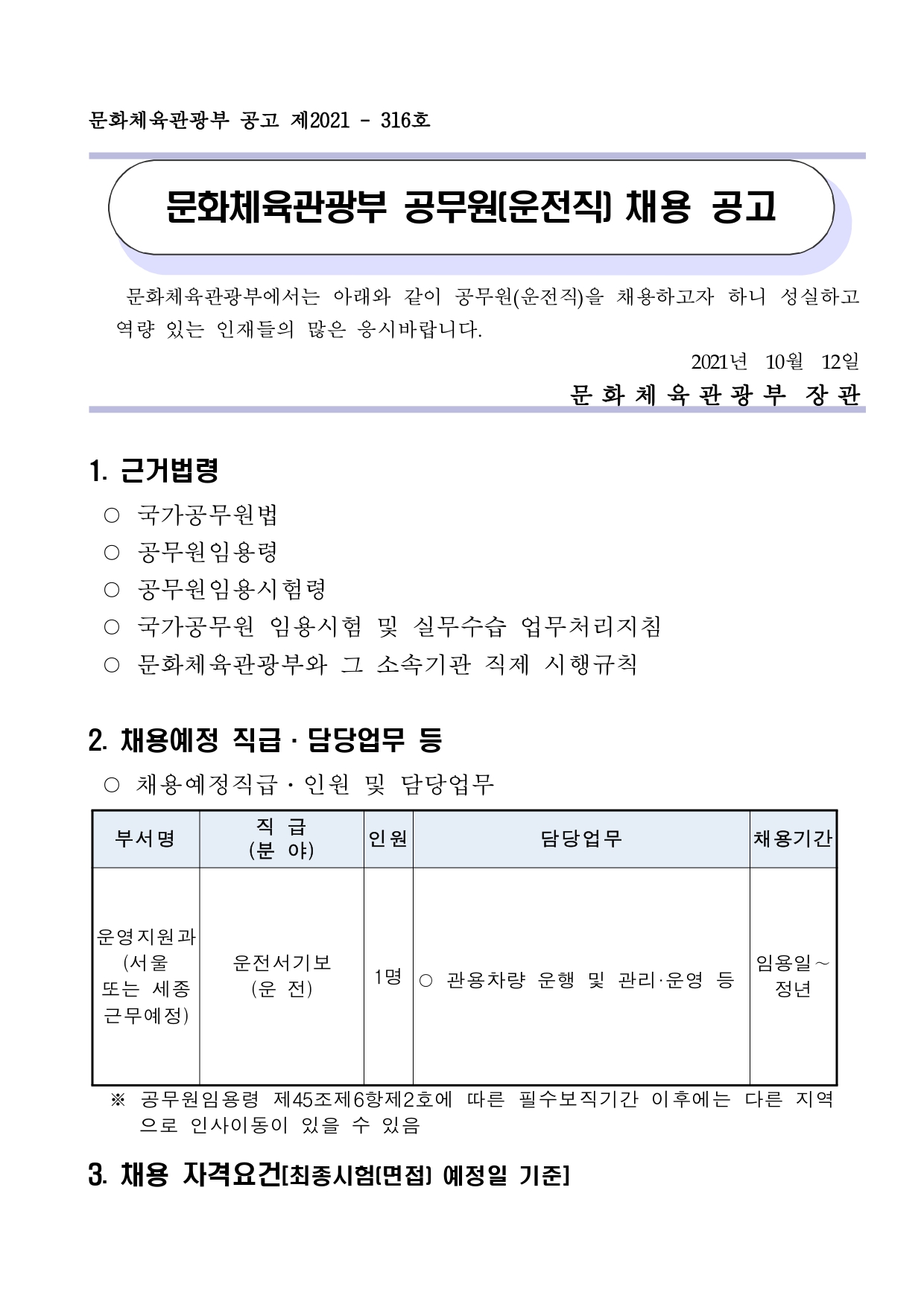 문화체육관광부 공무원(운전직) 채용 공고(21.10.12)