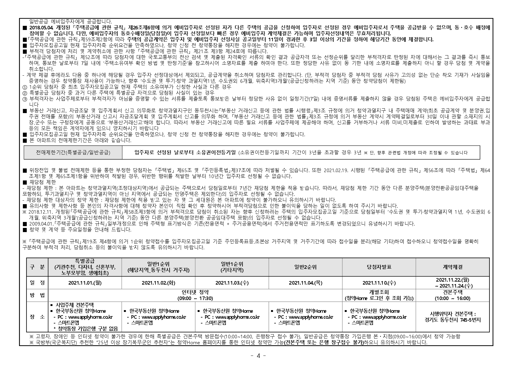 ■ 본 아파트의 최초 입주자모집공고일은 2021.10.22.입니다.(청약자격조건의 기간, 나이, 지역우선 등의 청약자격조건 판단기준일입니다.)