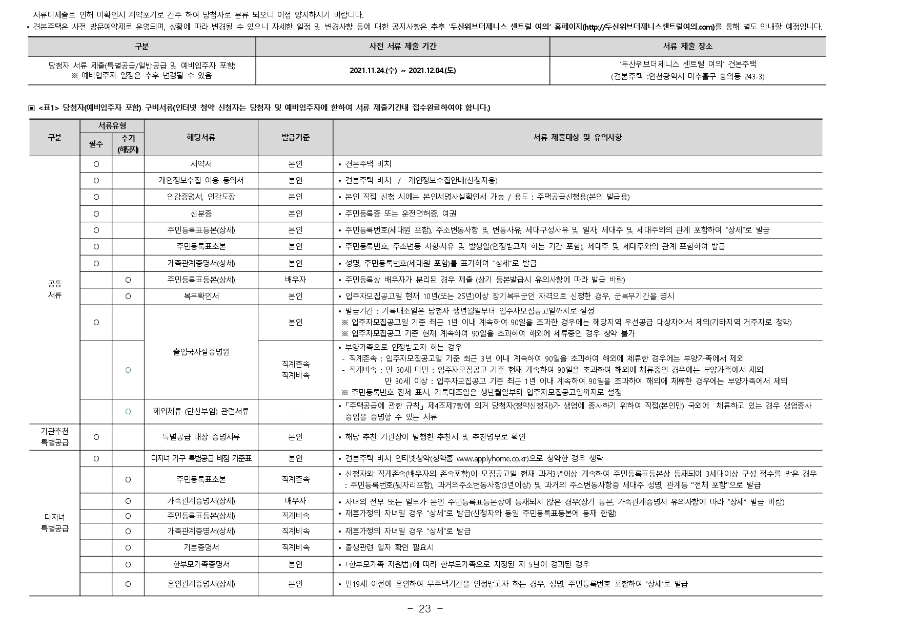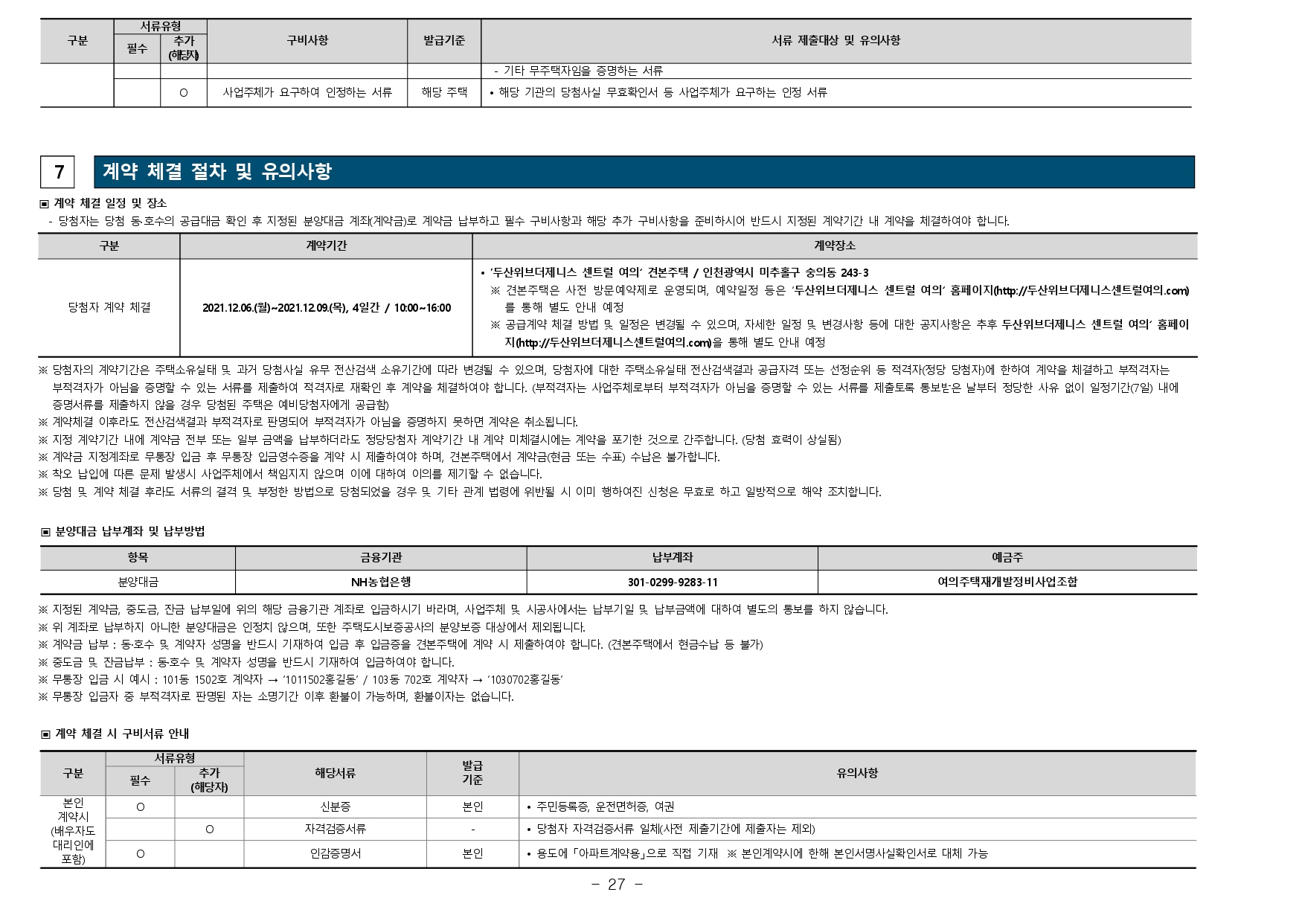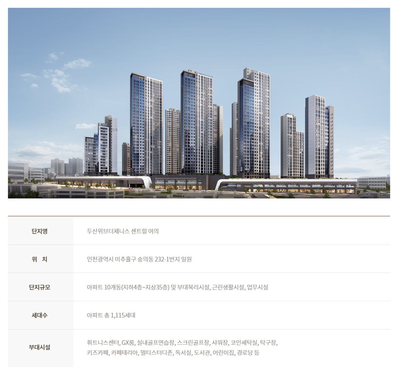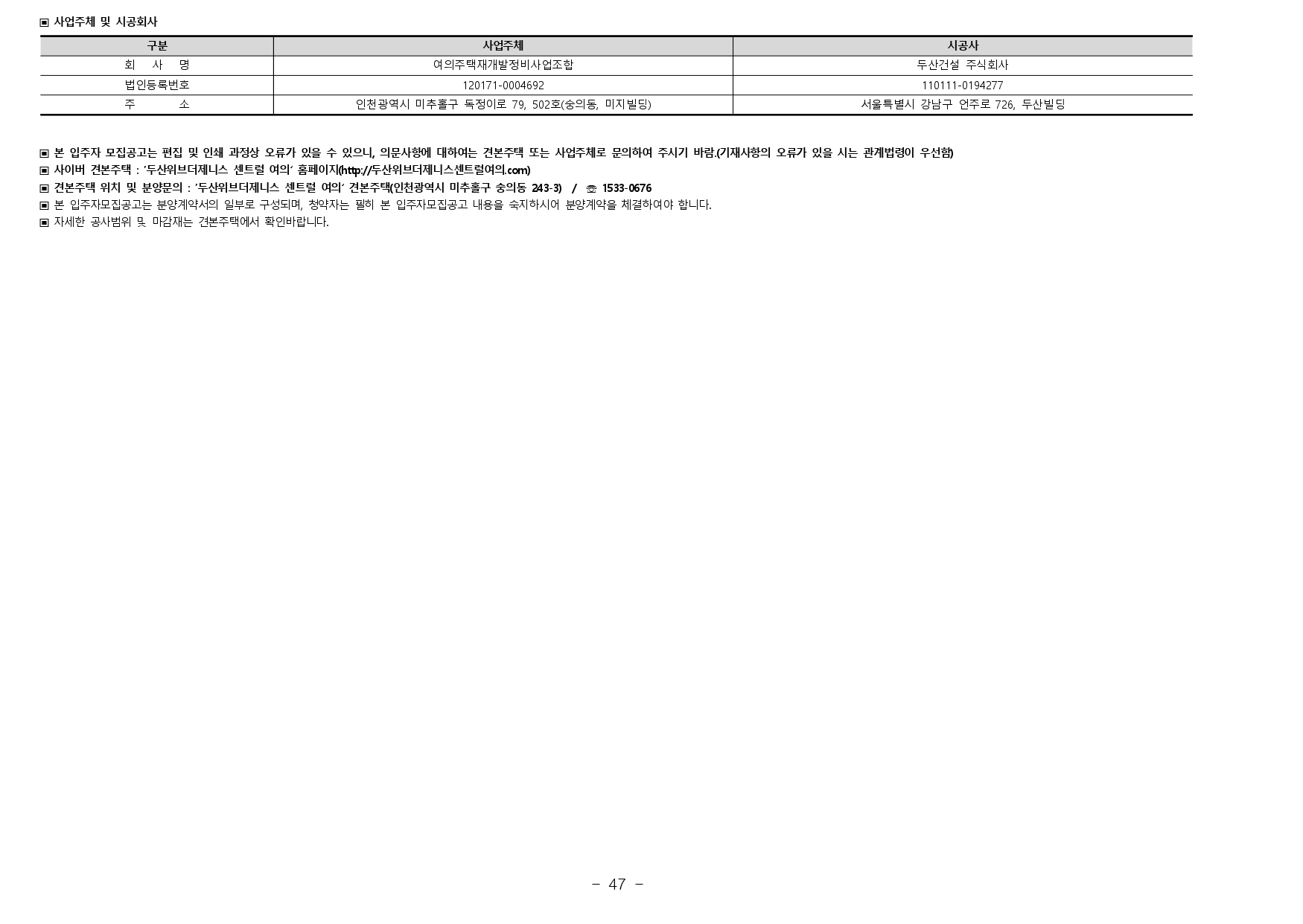 두산위브더제니스 센트럴 여의 입주자 모집공고 인천시 아파트(2021.112.)