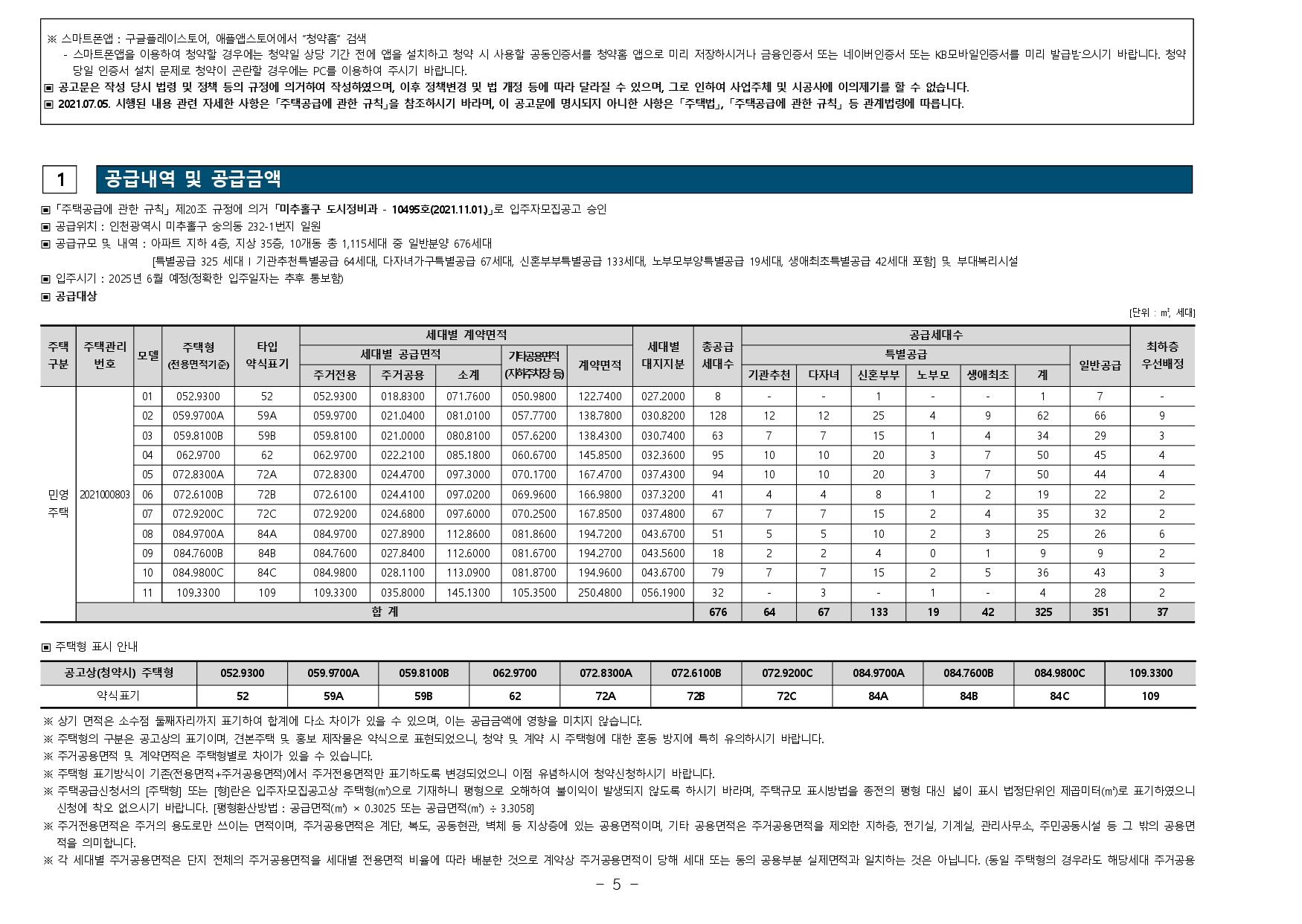 ▣ 해당 주택건설지역(인천광역시 미추홀구)은 「주택법」 제63조 및 제63조의2에 의한 비투기과열지구 및 청약과열지역으로서, 본 아파트는 「주택공급에 관한 규칙」에 따라 2주택 이상 소유한 세대에 속한 분은 1순위 자격에서 제외되며, 1주택 이상 소유한 세대에 속한 분은 1순위 가점제 청약이 불가합니다. (무주택 세대 또는 1주택을 소유한 세대에 속한 분만 1순위 청약 가능)