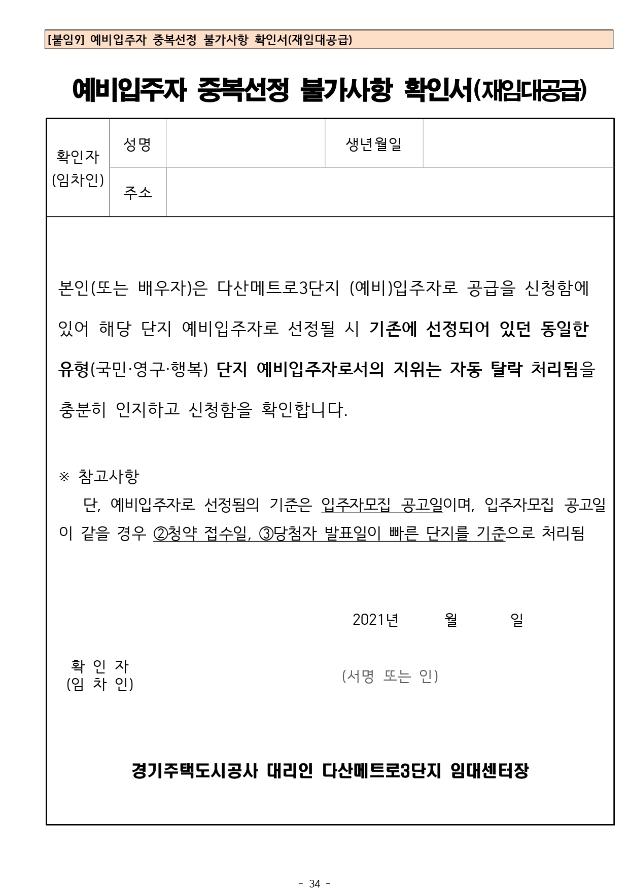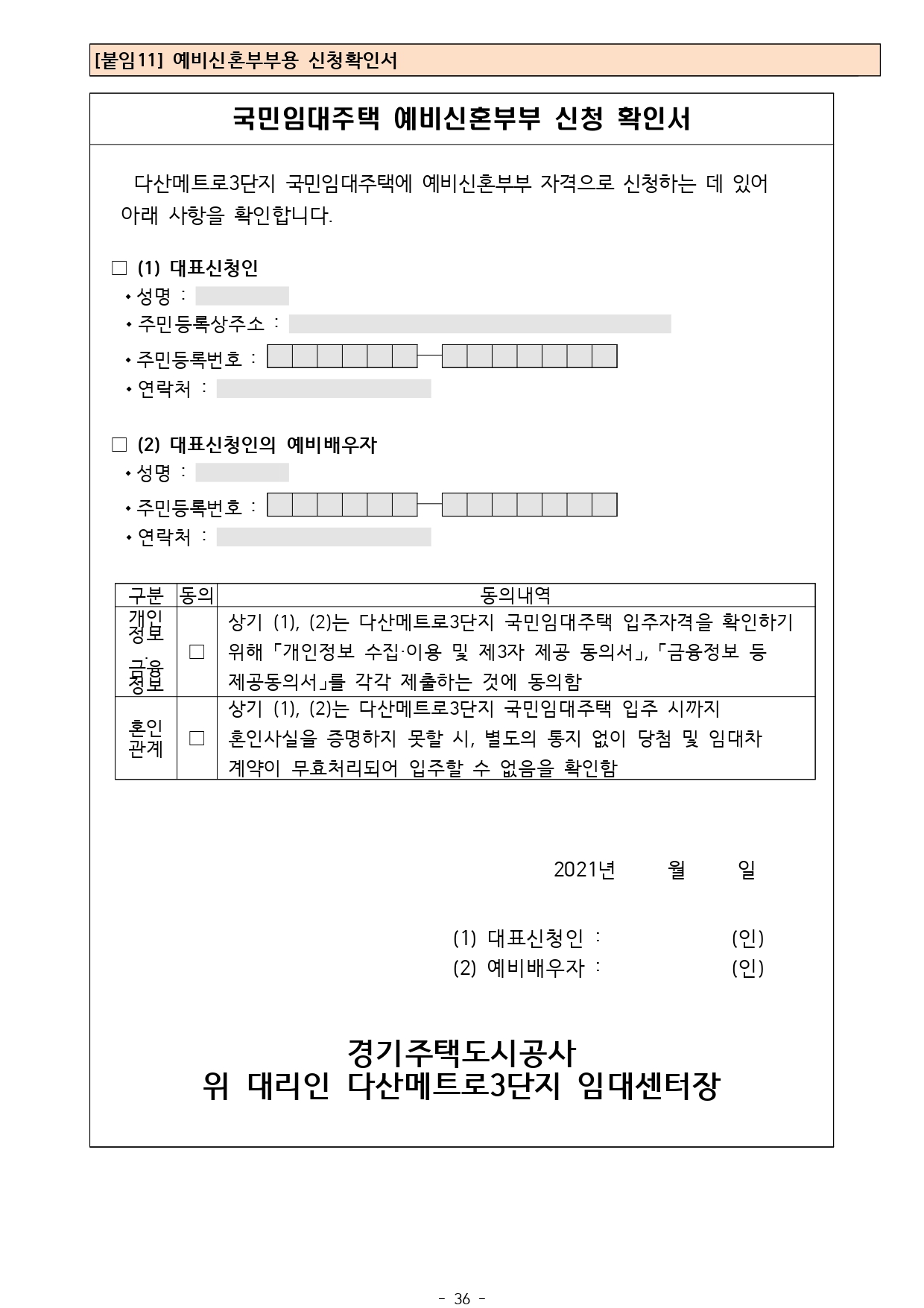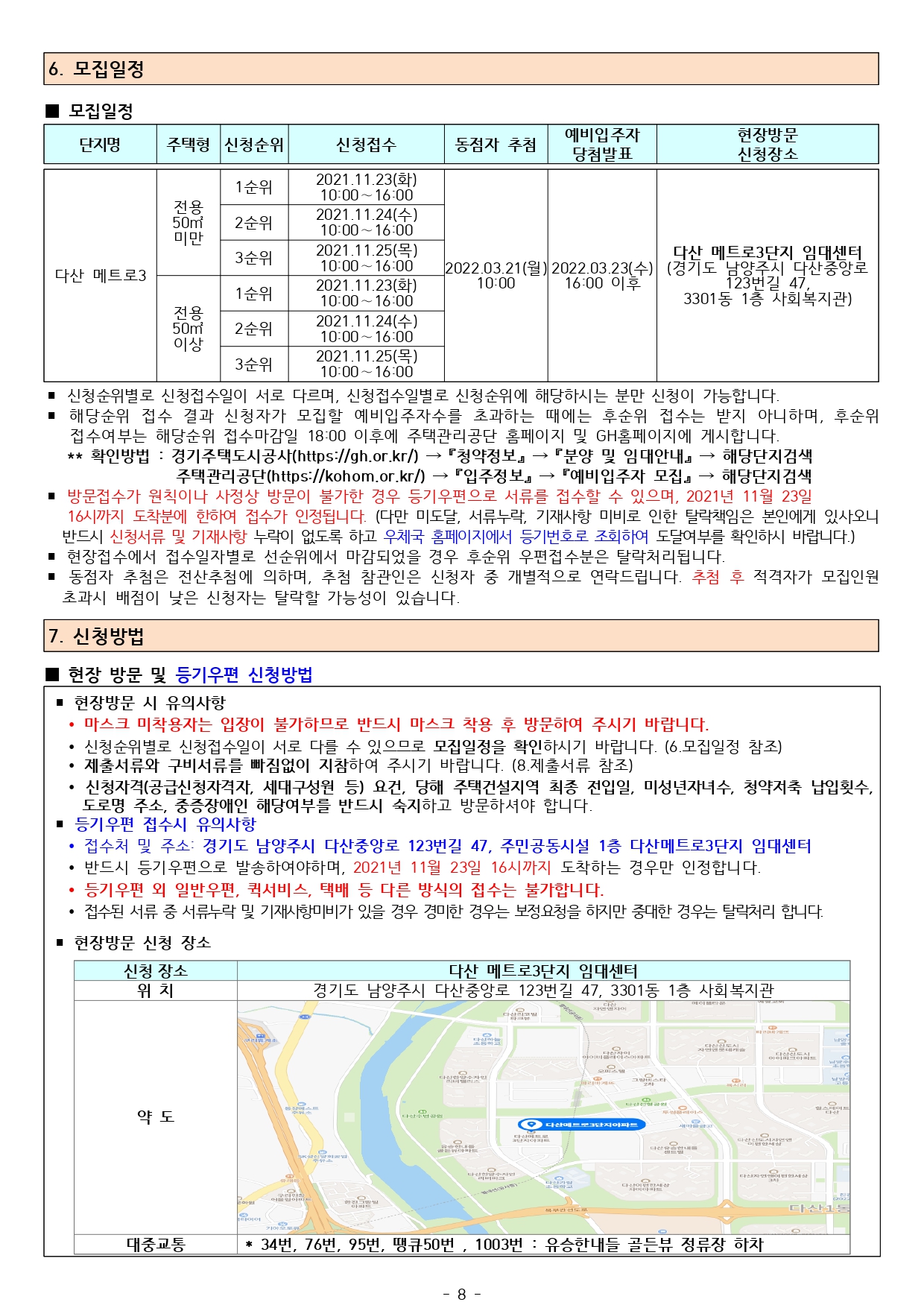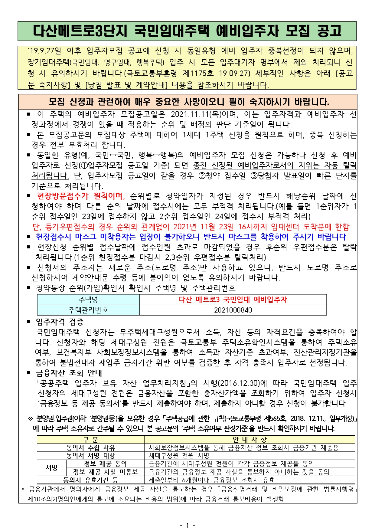 다산메트로3단지 국민임대주택 예비입주자 모집 공고(2021.11.11)