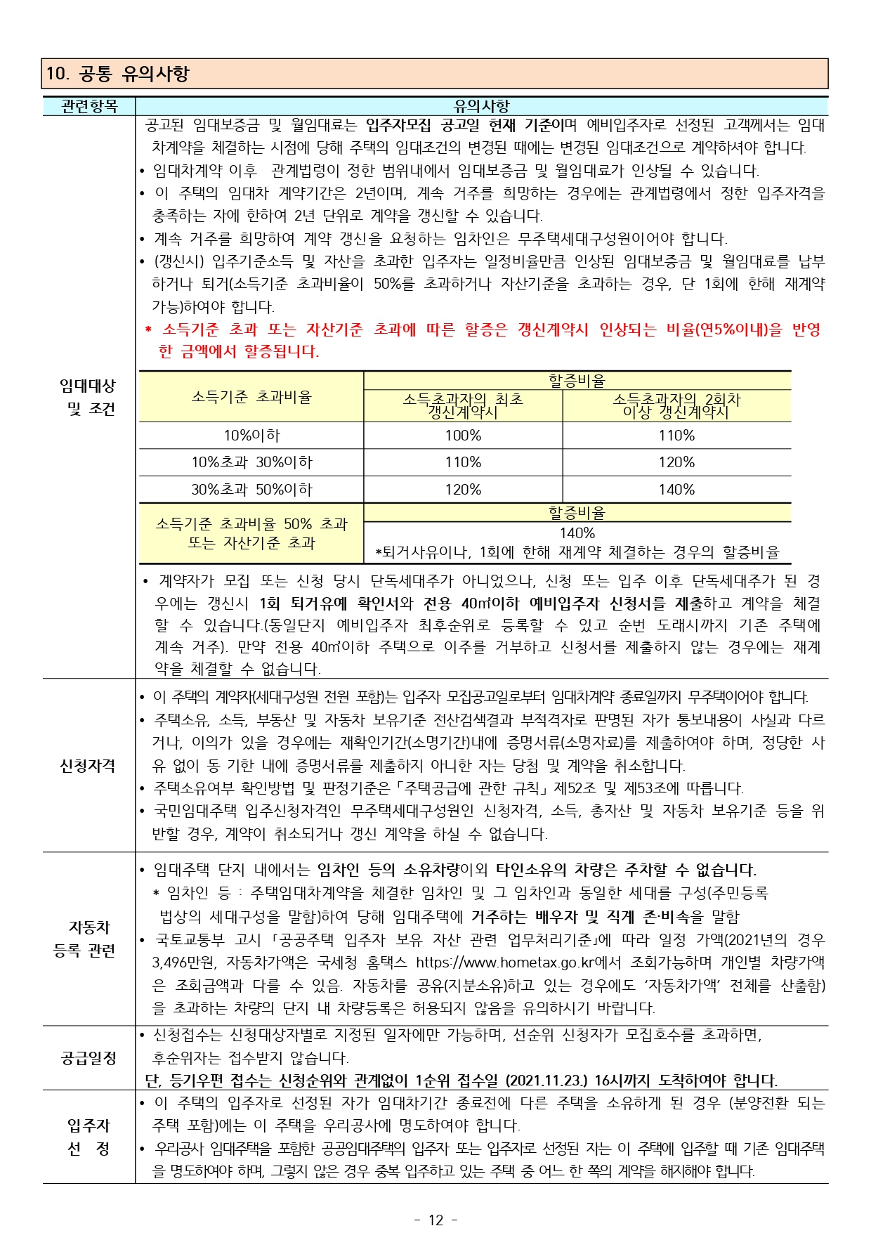 단, 등기우편접수의 경우 순위와 관계없이 2021년 11월 23일 16시까지 임대센터 도착분에 한함