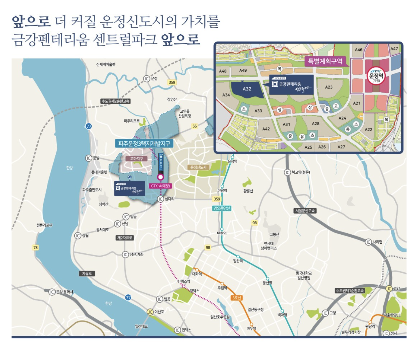 파주 운정지구 A32BL GTX 운정 금강펜테리움 센트럴파크 공동주택 입주자 모집공고입니다.