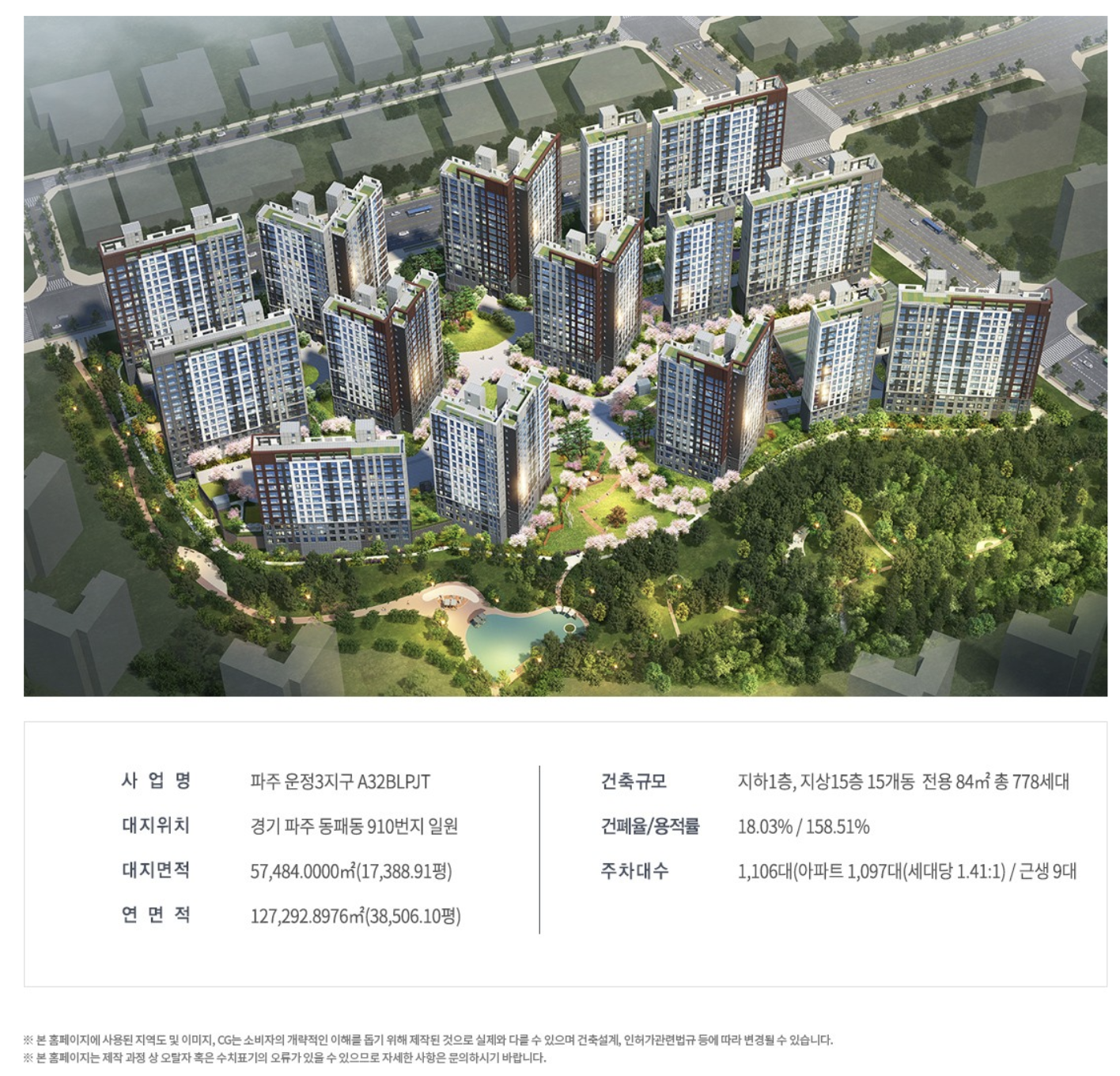 파주 운정지구 A32BL GTX 운정 금강펜테리움 센트럴파크 공동주택 입주자 모집공고