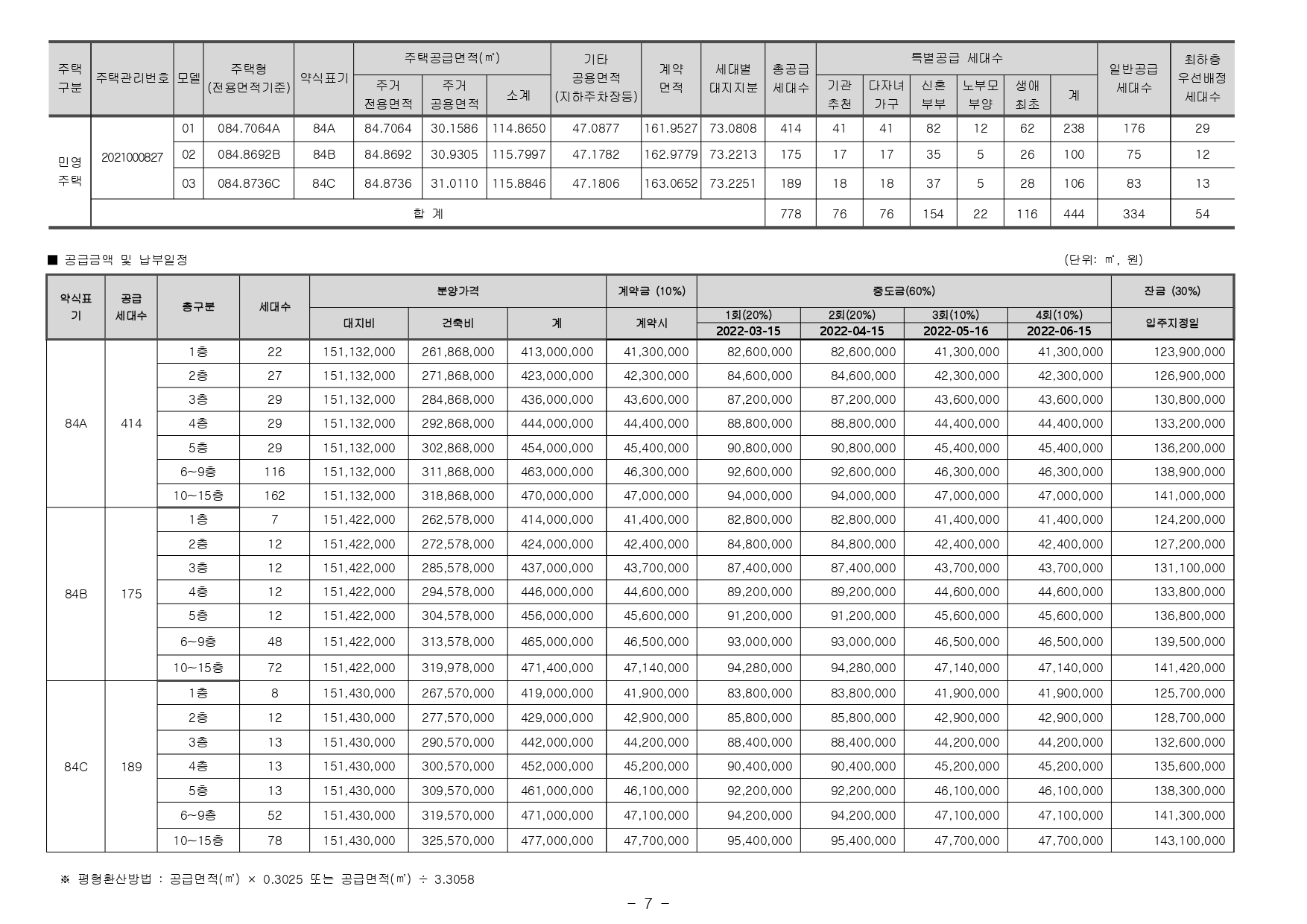 ■ 본 아파트의 최초 입주자모집공고일은 2021.11.12.입니다.(청약자격조건의 기간, 나이, 지역우선 등의 청약자격조건 판단기준일입니다.)