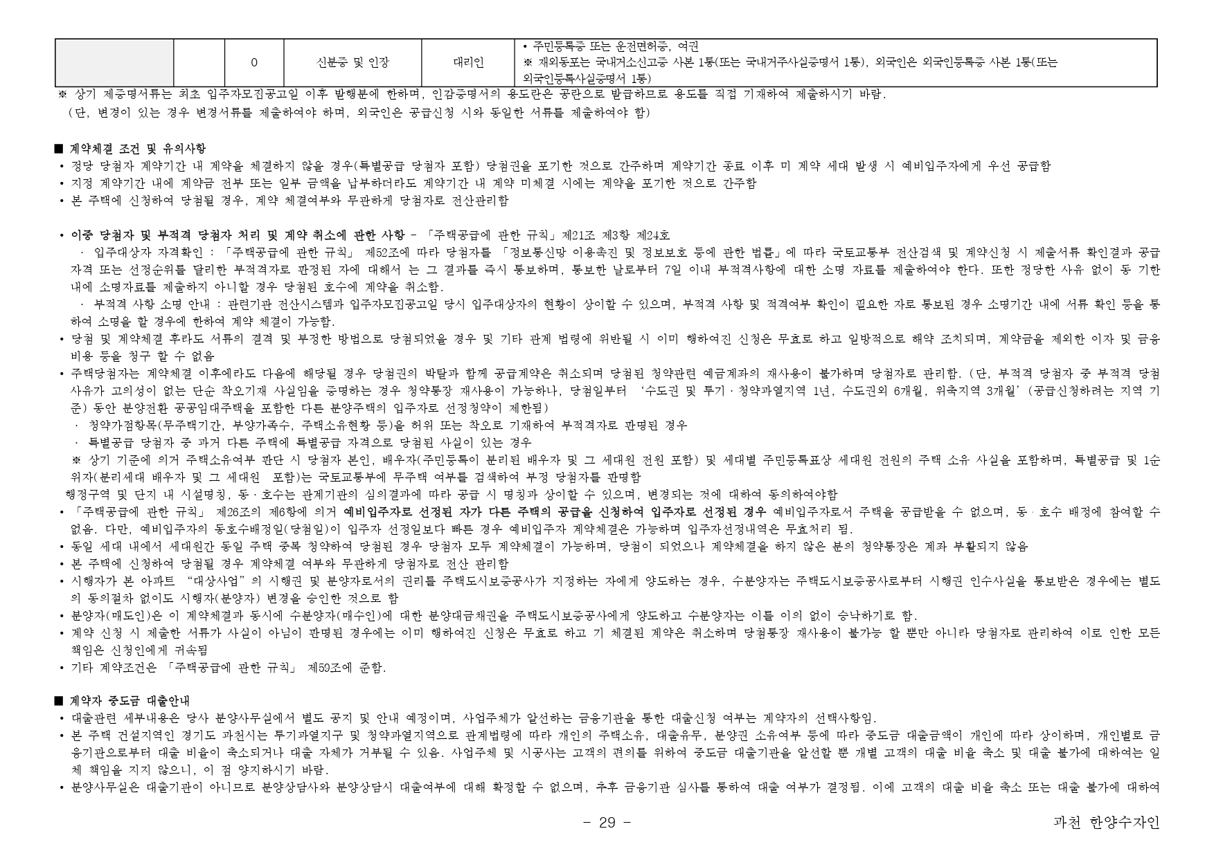 과천 한양수자인 아파트 입주자 모집 공고입니다.