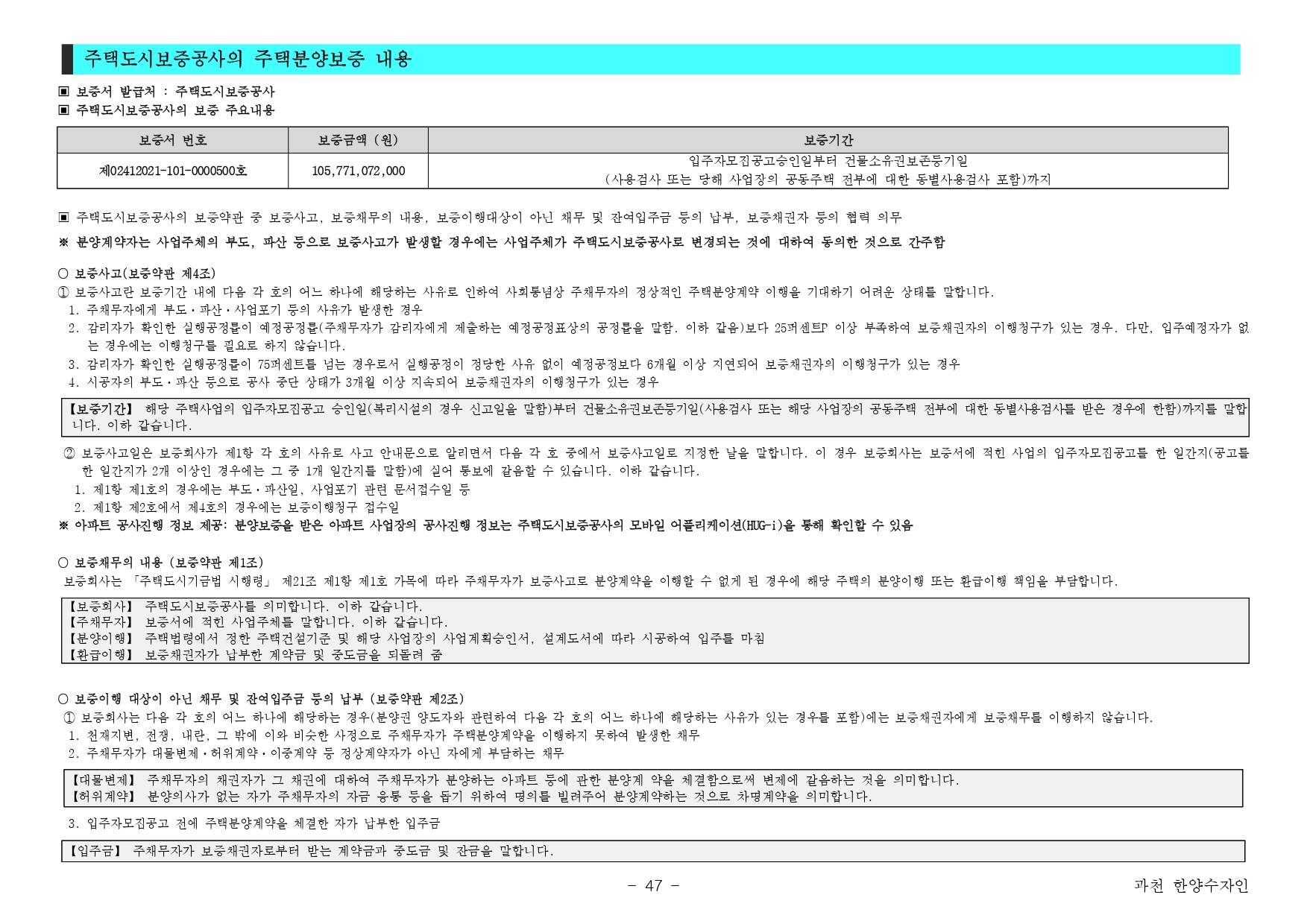 과천 한양수자인 아파트 입주자 모집 공고