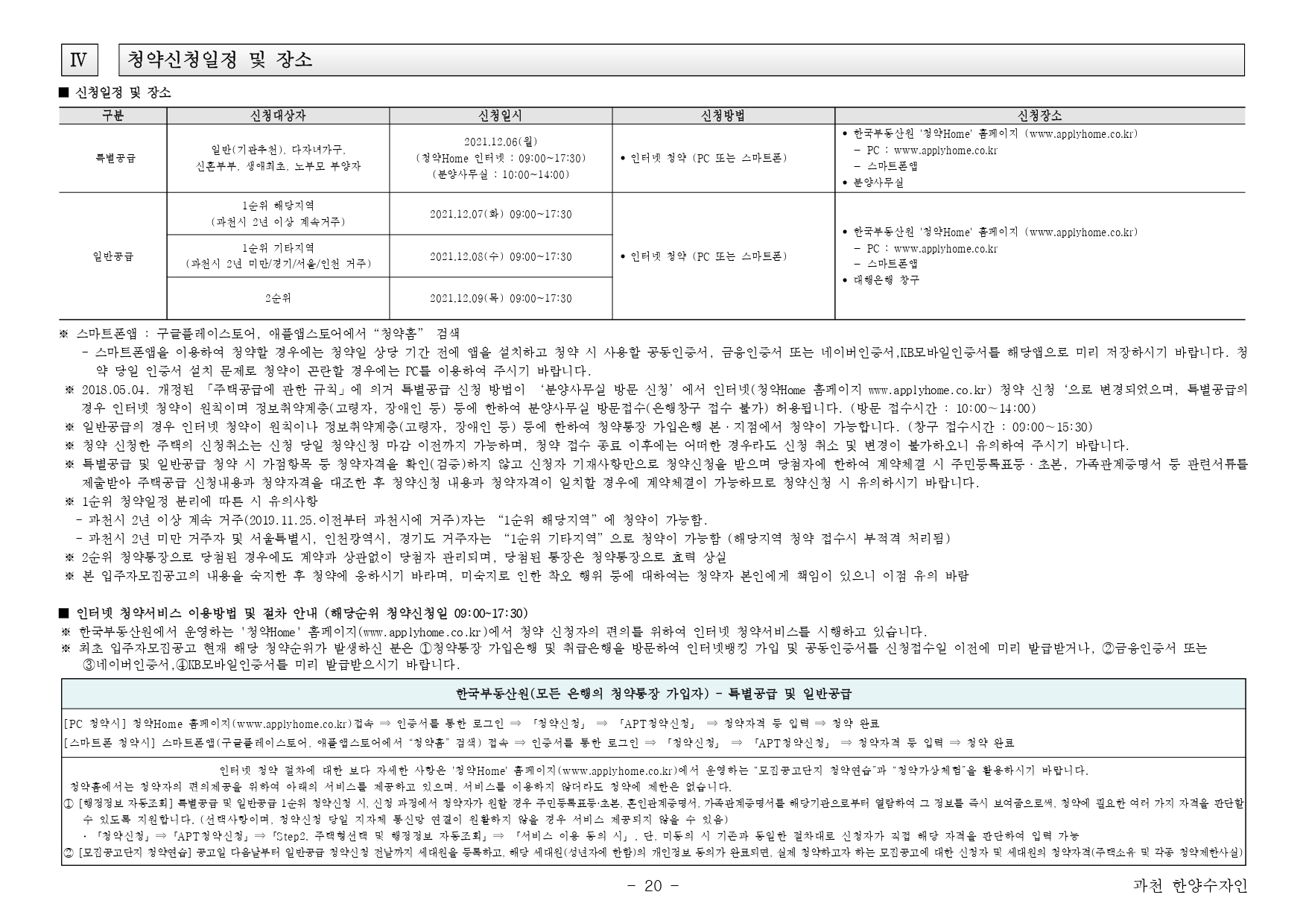 ■ 해당 주택건설지역(과천시)은 「주택법」 제63조 및 제63조의2에 의한 투기과열지구 및 청약과열지역으로서, 본 아파트는 「주택공급에 관한 규칙」에 따라 1주택 이상 소유한 세대에 속한 분은 1순위 가점제 청약이 불가하며, 2주택 이상 소유한 세대에 속한 분은 1순위 자격에서 제외됩니다. ※1순위청약제한대상 : ①세대주가 아닌 자, ②과거 5년 이내에 다른 주택에 당첨된 자 및 그 세대에 속한 자(전지역 해당, 모든 청약 대상자), ③2주택(분양권등 포함) 이상을 소유한 자 및 그 세대에 속한 자
