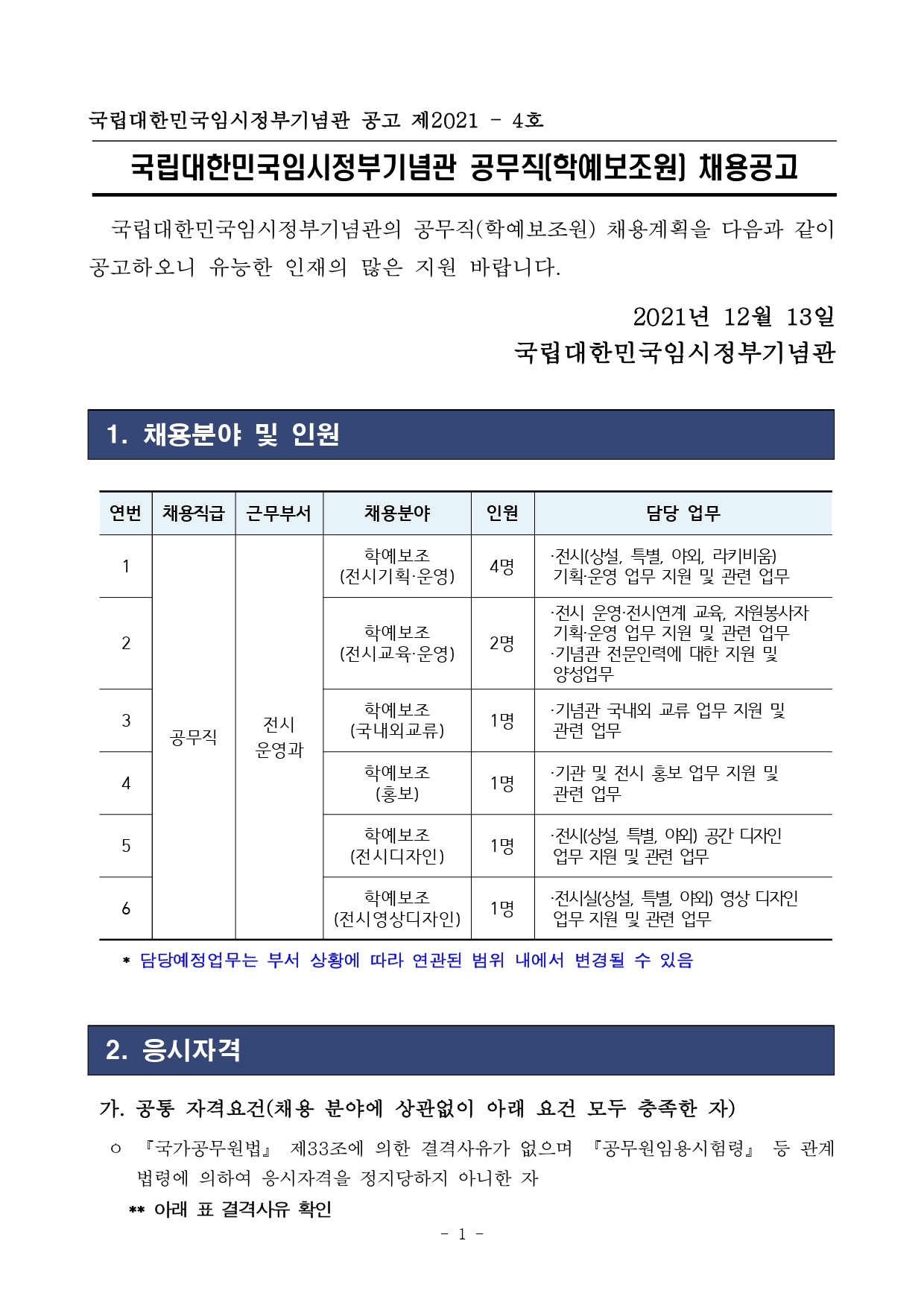 (전시운영)국립대한민국임시정부기념관 공무직(학예보조원) 채용 공고문.hwp
