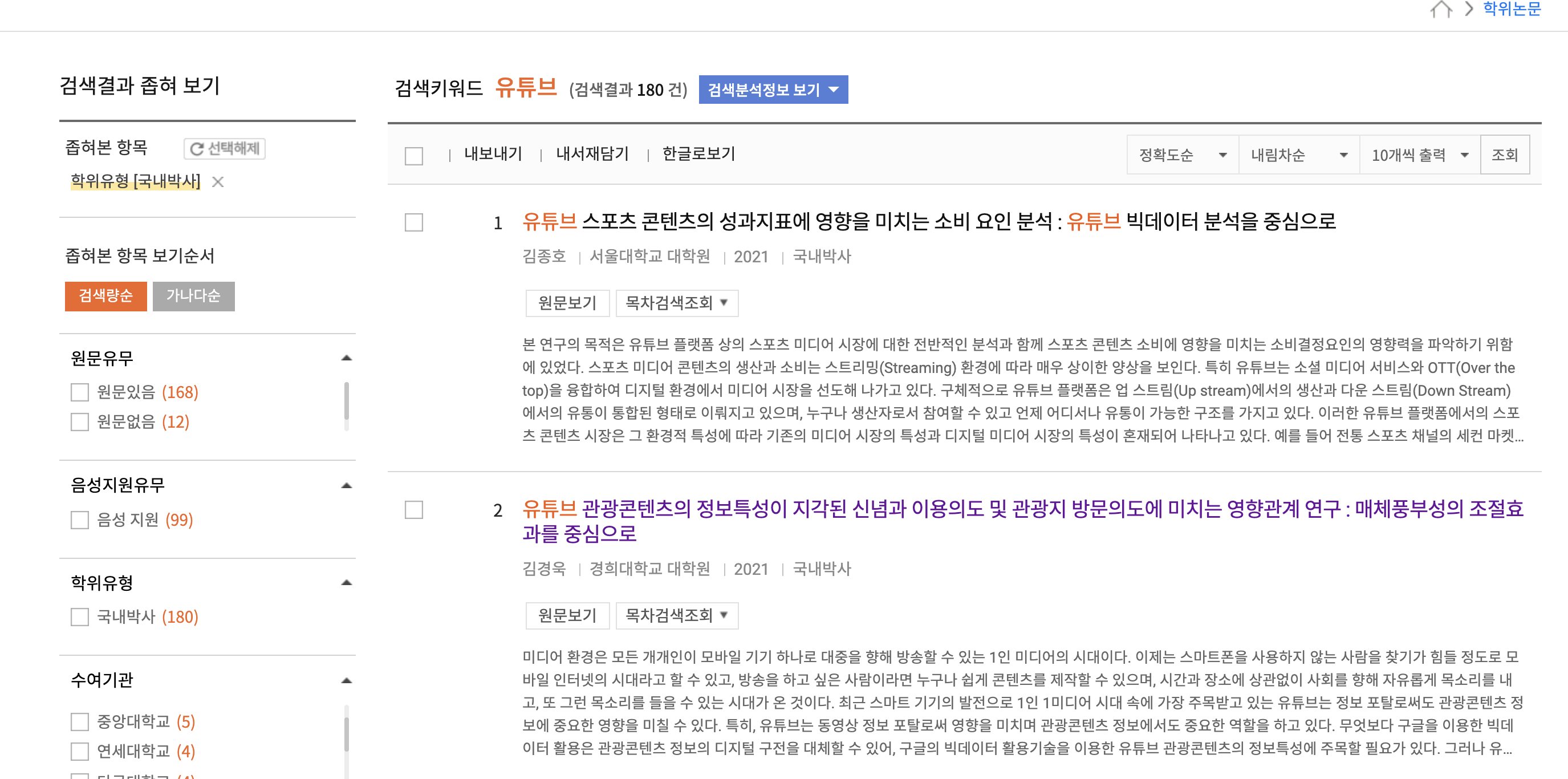 석사학위 논문은 엄청 많은데, 박사학위 논문은 상대적으로 많이 적다.