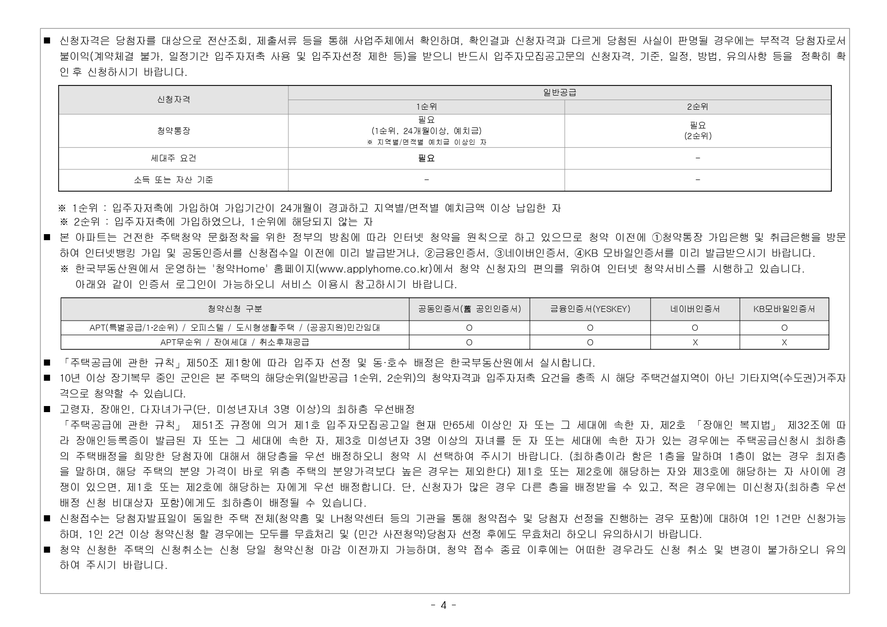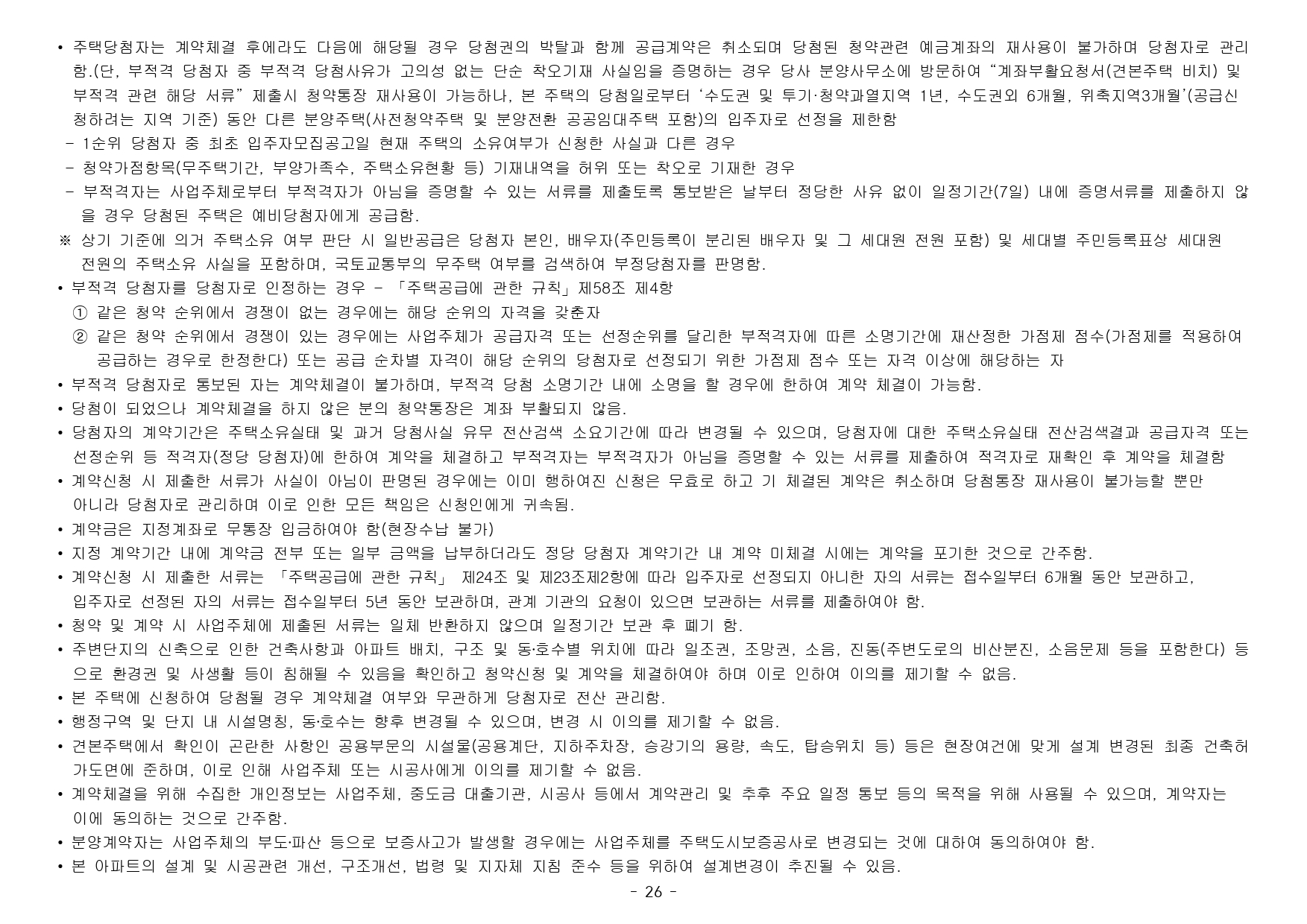● 본 아파트 입주자모집공고의 내용을 숙지한 후 청약 및 계약에 응하시기 바라며, 미숙지로 인한 착오행위 등에 대하여는 청약자 본인에게 책임이 있으니 이점 유의하시기 바랍니다.