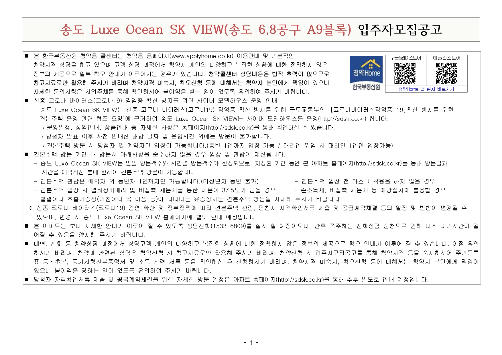 송도 Luxe Ocean SK VIEW(송도 6,8공구 A9블록) 입주자모집공고입니다.