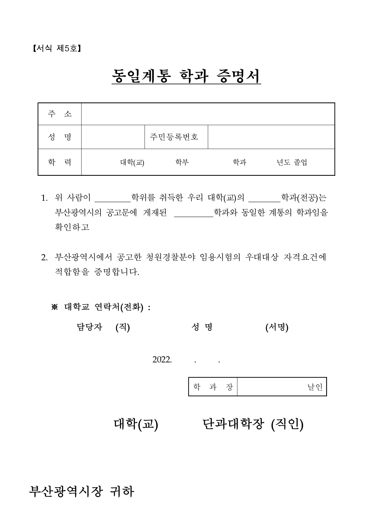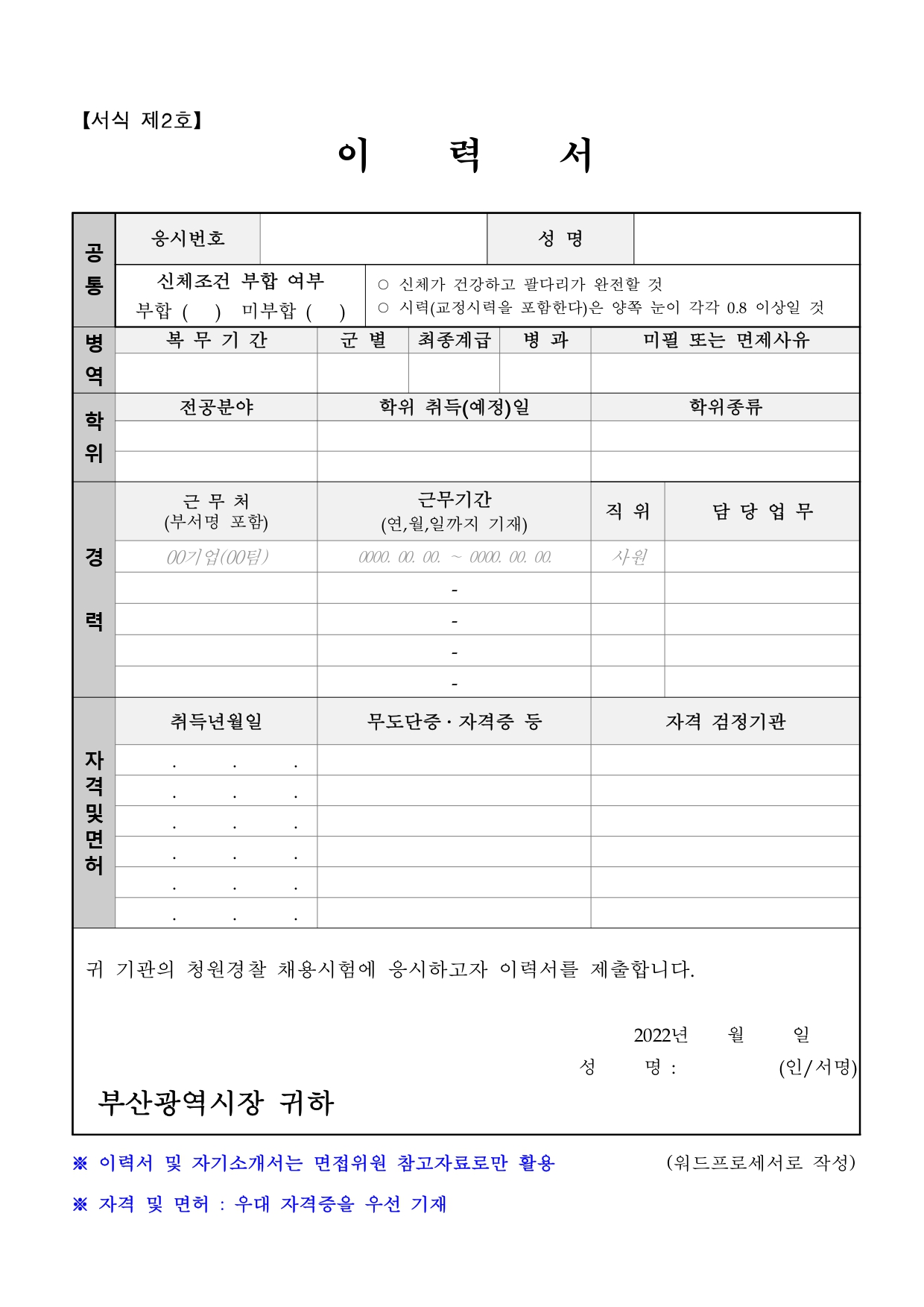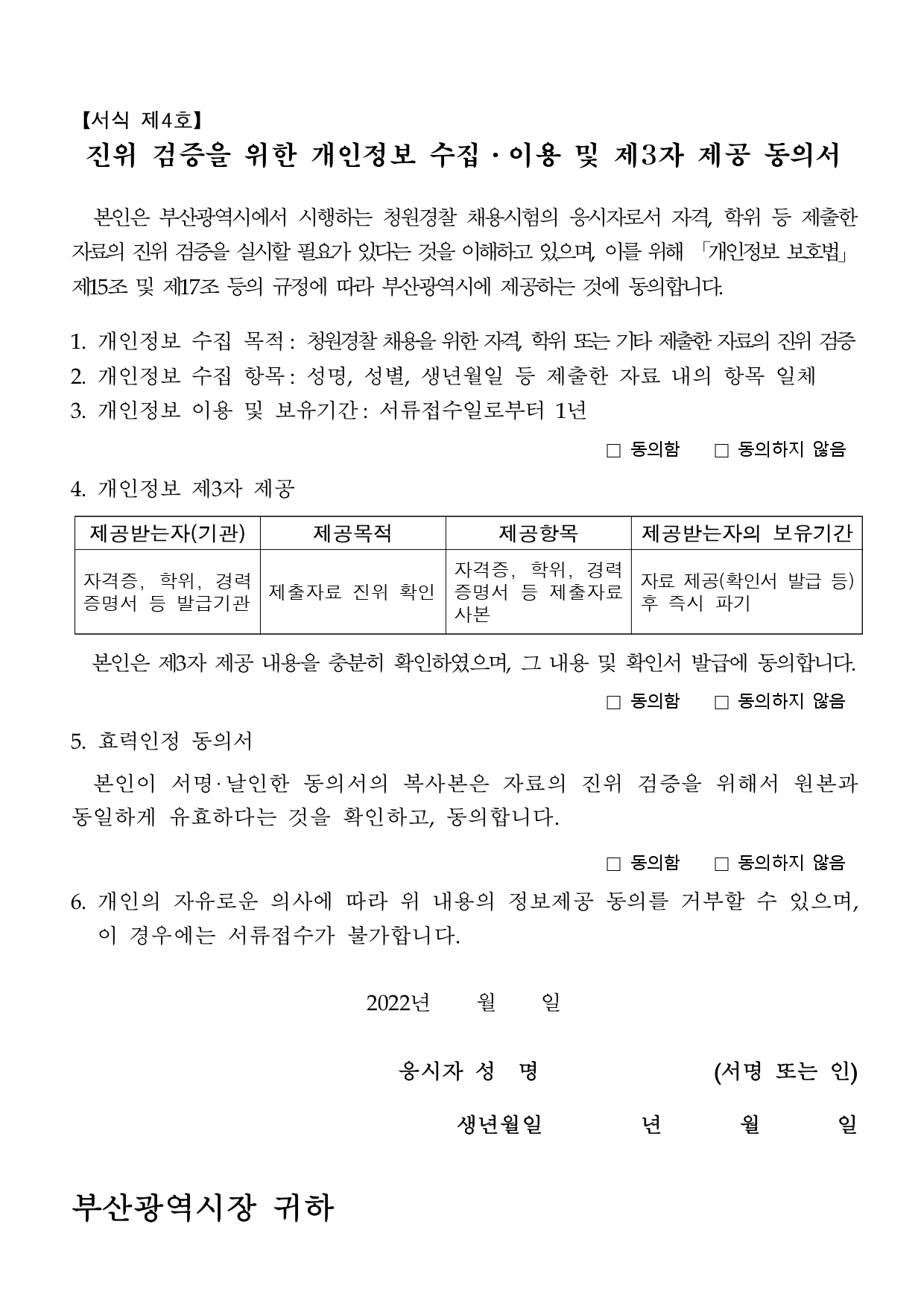2022년 부산광역시 청원경찰 채용시험 공고